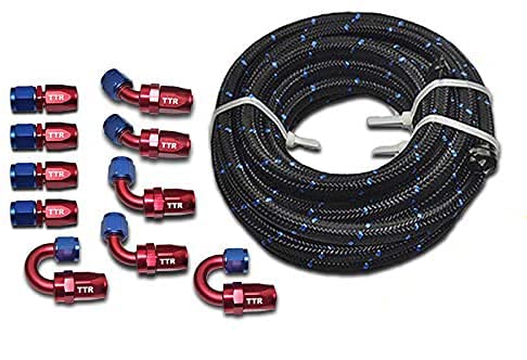 PAQUETE INCLUYE: Manguera de combustible de nailon AN-6 x 33 pies / Accesorio recto AN-6 x 4 / Accesorio de 45 grados AN-6 x 2 / Accesorio de 90 grados AN-6 x 2 / Accesorio de 180 grados AN-6 x 2 CARACTERÍSTICAS DEL PRODUCTO: Esta manguera de combustible de acero trenzado de nailon está especialmente diseñada para trabajar en cualquier proyecto automotriz. Esta manguera le brinda niveles de rendimiento y confiabilidad inigualables para sus aplicaciones de alto rendimiento. Esta manguera es ideal para alta temperatura, alta presión y ofrece una amplia gama de compatibilidad con fluidos. Esta manguera está hecha de poliuretano de alta calidad en el interior que le otorga alta resistencia química y térmica, junto con una trenza de acero inoxidable en el exterior que le otorga alta durabilidad, resistencia a la presión extrema y una apariencia profesional y de alta tecnología. Son de flujo óptimo. El poliuretano es flexible y resistente y, combinado con la trenza de acero inoxidable, puede funcionar bajo condiciones de alta presión y constante flexión y vibración.