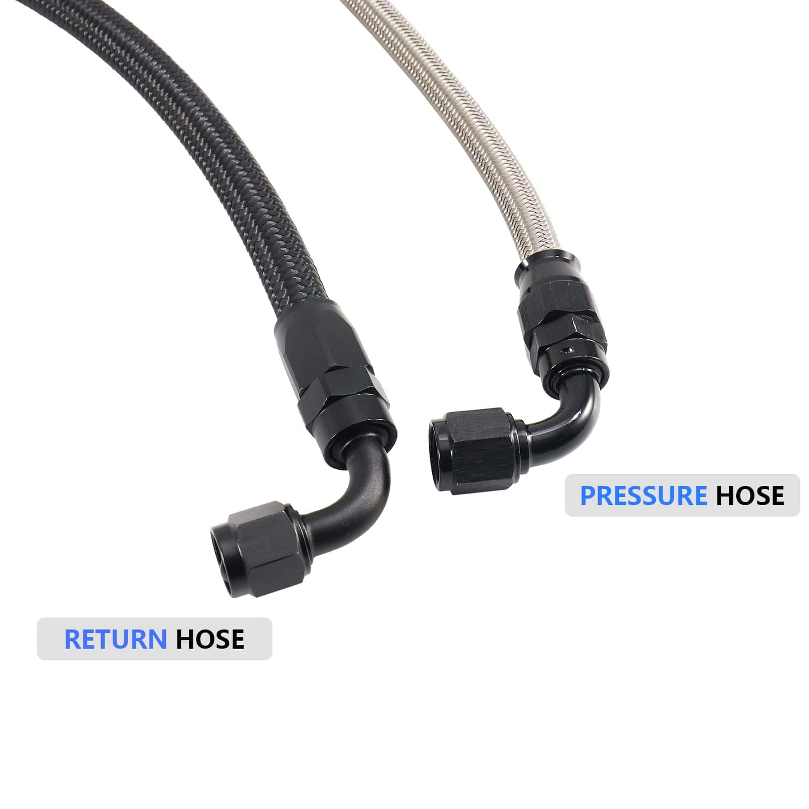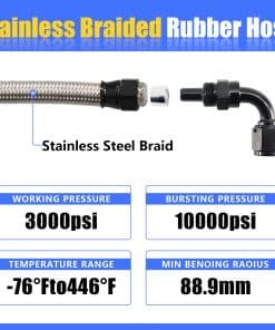 1x 25in 3/8″ Manguera de goma trenzada de acero inoxidable con accesorio de manguera a-6AN 90 grados