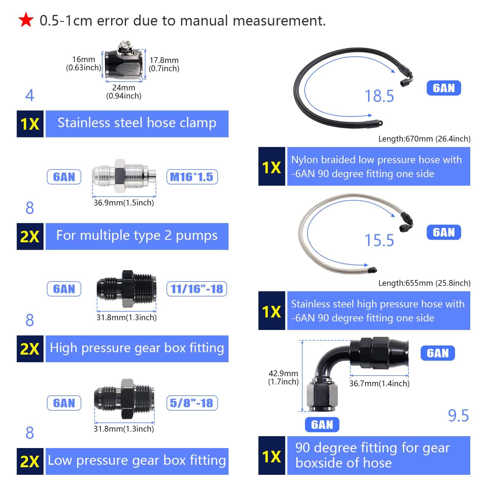 Kit de manguera de dirección asistida universal para caja