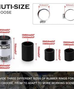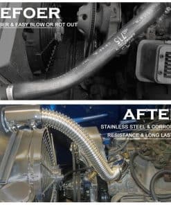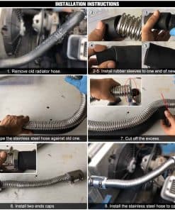 1. COMPATIBILIDAD – Compatible con Montaje Universal. (Diseño flexible elimina la molestia de encontrar una manguera de goma con las curvas justas). 2. APLICACIÓN – Diseñado para reemplazar sus mangueras de radiador estándar de goma, utilizada para Manguera de Radiador (Superior) o Manguera de Radiador (Inferior). 3. VENTAJA – La manguera de acero inoxidable no se romperá ni pudrirá como una de goma, construida de acero inoxidable para resistencia a la corrosión y una apariencia duradera. 4. USADA PARA – Manguera de Radiador (Superior) o Manguera de Radiador (Inferior), cortar a la longitud deseada, suficiente manguera para Manguera (Superior) o (Inferior). 5. PRECAUCIÓN – Al instalar los tapones, puede ajustar la firmeza del tornillo en los tapones para que se ajuste a su manguera.