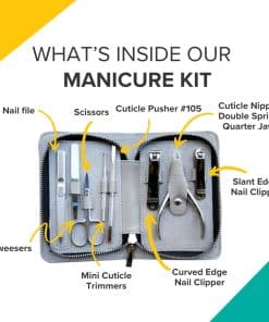 La manicura perfecta está al alcance con el Kit de Manicura Rui Smiths Pro de Acero Inoxidable de 8 Piezas. Este kit incluye dos herramientas imprescindibles de Rui Smiths: el Cortaúñas de Precisión Pro y el Empujador de Metal Pro Estilo 105. Estas herramientas de acero inoxidable de calidad de salón son ideales para satisfacer las exigentes necesidades de spas y salones en más de 30 países. Diseñadas para ofrecer precisión, los mangos fáciles de sostener y los acabados suaves garantizan una manicura o pedicura impecable. Para mantener la higiene, recuerda limpiar y secar cuidadosamente tus herramientas de belleza después de cada uso. Las herramientas de acero inoxidable son aptas para su uso en autoclaves. Este kit es tu solución para tratar cutículas irritadas, uñas encarnadas, piel muerta, cutículas desiguales, callos, vellos sueltos y uñas irregulares. Para un acabado impecable, aplica aceite para cutículas para mantener la salud de estas, o crema hidratante para manos/rostro para proteger tu piel. Cada herramienta de Rui Smiths está hecha a mano con cuidado, ofreciendo una garantía del 100% contra problemas de fabricación o defectos. Siempre estamos aquí para proporcionarte un reembolso o reemplazo si es necesario. Confía en Rui Smiths para llevar tu cuidado de uñas al siguiente nivel.