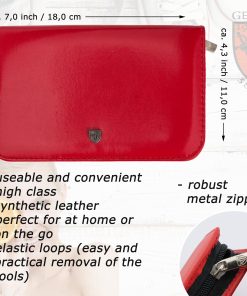 4. ESTUCHE: Cuero de moda rojo, tamaño aprox. 18,0 x 11,0 x 2,5 cm. Nuestros organizadores están hechos de materiales de alta calidad de moda o clásicos. Equipamiento adicional: Paño de limpieza de microfibra para limpiar los artículos de acero, hoja informativa general de cuidado de uñas.