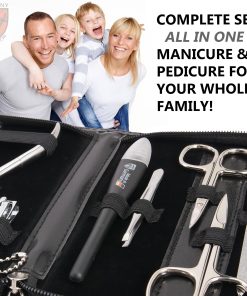 Kit de cuidado de uñas de 3 Swords Alemania con herramientas de manicura y pedicura profesionales. Nuestros sets para uso en casa y viajes convencen por los más altos niveles de calidad, diseño moderno, durabilidad e ingeniería alemana combinada con un servicio al cliente de primera clase. Contenido: tijeras para cutículas, tijeras para uñas, cortaúñas para cutículas, cortaúñas para uñas, pinzas, lima de uñas de zafiro, instrumento doble, removedor de cutículas, cortaúñas para dedos, cortaúñas para pies. Instrumentos de acero: hechos a mano, niquelados brillantes (protección contra la corrosión), pulidos y endurecidos. Todos los estuches vienen en una atractiva caja de regalo. Los instrumentos son fabricados por 3 Swords desde 1927. Estuche: cuero de moda negro, tamaño aprox. 18,0 x 11,0 x 2,5 cm. Nuestros organizadores están hechos de materiales de moda o clásicos de alta calidad. Equipamiento adicional: paño de limpieza de microfibra para limpiar artículos de acero, hoja de información general sobre el cuidado de uñas. ¡GARANTÍA DE SATISFACCIÓN: Por favor, CONTÁCTENOS DIRECTAMENTE, siempre encontramos una solución! ¡Un set de belleza de 3 Swords es un regalo perfecto para mujeres, niñas y hombres, ideal para Navidad, cumpleaños, día de las madres / padres, matrimonio, Acción de Gracias y el día de San Valentín!