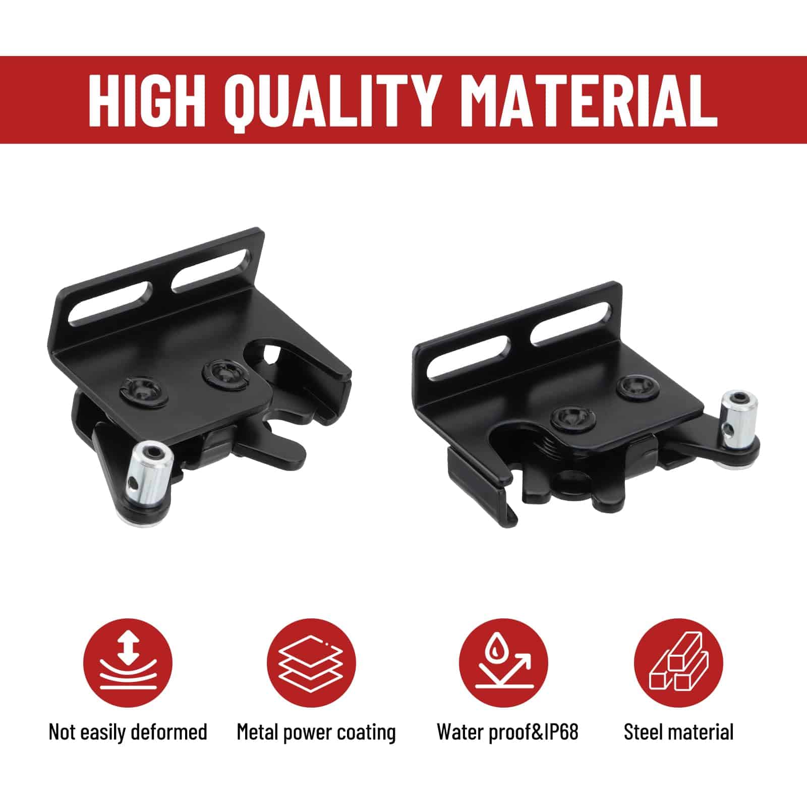 Proteja sus artículos: La manija de torsión garantiza que la capucha del camión solo se pueda abrir con una llave, evitando aperturas accidentales y asegurando la seguridad de la carga en todo momento. Además, la manija está equipada con una cubierta protectora que evita que el agua de lluvia se filtre en la cerradura, mientras mantiene fuera el polvo y los desechos que podrían provocar obstrucciones. Mantenga su carga segura y protegida con este kit de manija de tuerca duradero y confiable.
