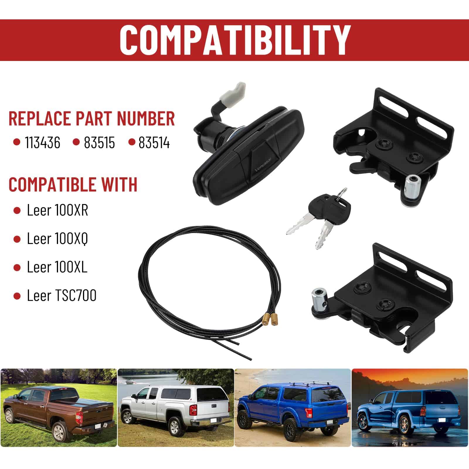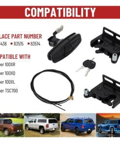 Kit de Manija de Tuerca para Capucha de Camión Venussar 113436-100XQ, compatible con Tapas de Camión Leer 100XQ, 100XL, 100XR, Cierres 83514/83515. Este kit de manija de tuerca está diseñado como una solución de reemplazo para las tapas de camión Leer 100XQ, 100XL, 100XR y TSC700. Con los números de parte de reemplazo 83515 para el lado del conductor y 83514 para el lado del pasajero, este kit garantiza una fácil instalación y compatibilidad perfecta.