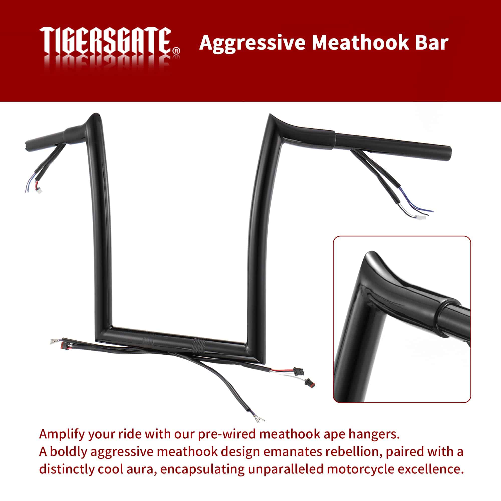 Lista de paquetes: Elección de manillares de 14″ cromados o negros «pre-cableados» con cableado de interruptor de manillar «Plug n Play» preinstalado, cables «Can-Bus», 1 en cada lado de los manillares