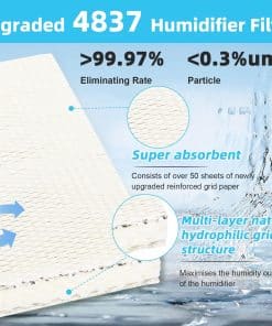 El kit de mantenimiento para humidificador 4837 es compatible con los modelos Aprilaire 560, 560A y 568 de humidificadores de casa completa. Contiene todos los componentes necesarios para garantizar que su humidificador mantenga un rendimiento óptimo, como nuevo. El elemento del filtro del kit de mantenimiento 4837 está hecho de malla de aluminio con un recubrimiento cerámico poroso, lo que le ayuda a mantener la humedad en su hogar y lograr un rendimiento óptimo. La gama de humedad óptima es del 40% al 60%. Mantenga un ambiente cómodo y húmedo para proteger la salud de su familia. Este kit de humidificador 4837 es adecuado para el filtro de humidificador Aprilaire 560 y se puede instalar fácilmente en solo unos minutos. Le sugerimos que siga la secuencia de instalación en la imagen y reemplace gradualmente cada componente en el kit para garantizar el funcionamiento normal y el rendimiento óptimo del humidificador 4837. Al regular con precisión el flujo de agua a través del orificio de estrangulamiento y optimizar la distribución de agua con la bandeja de distribución de agua, se logra una humidificación eficiente mientras se reduce eficazmente el consumo de energía.