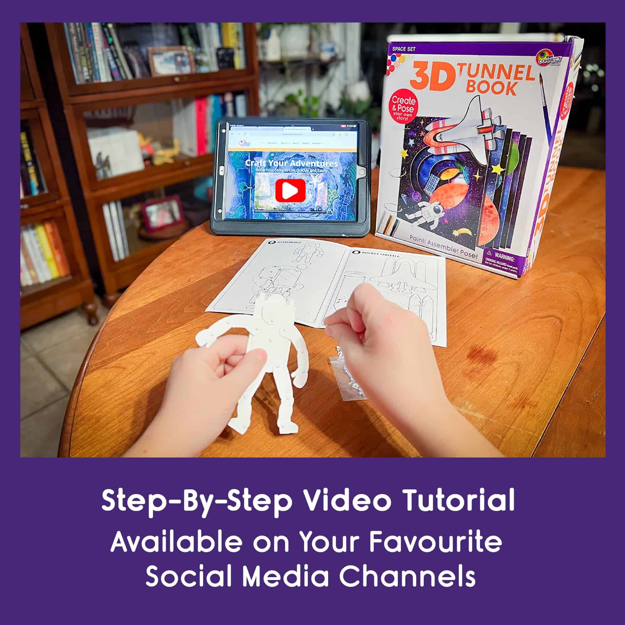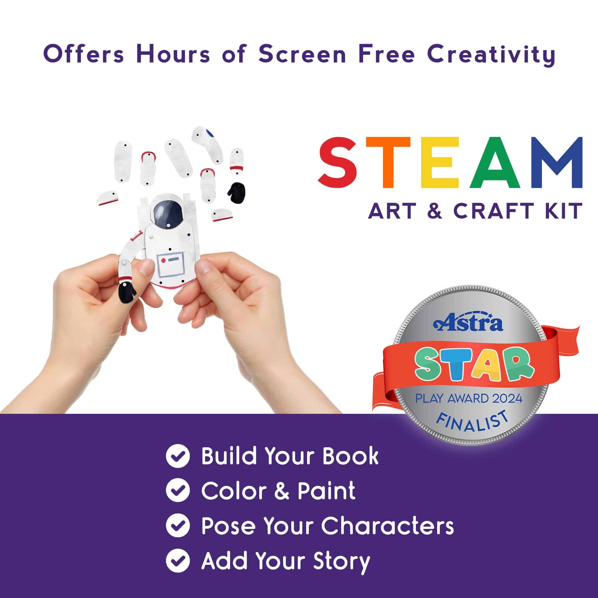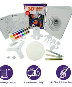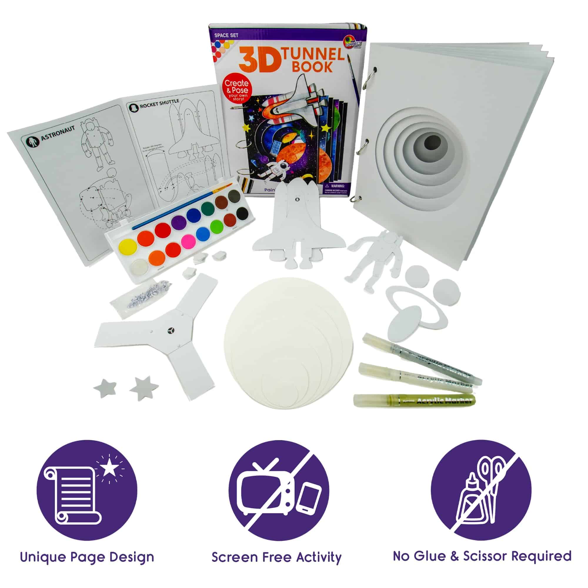 1. ¡HAZ TU PROPIO LIBRO: El Libro en Túnel 3D es un kit de arte y manualidades para hacerlo tú mismo que te permite diseñar y construir tu propio libro tridimensional! ¡Despega hacia un mundo de creatividad mientras creas tu lanzadera de cohete movible, astronauta y satélite con los que puedes posar y jugar!.