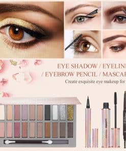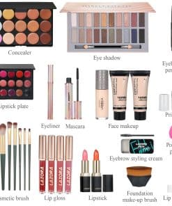 PRODUCTO INCLUYE – Incluye una variedad de cosméticos y accesorios de maquillaje como paleta de sombras de ojos de 20 colores, corrector, lápiz labial, base, crema BB, loción corporal marrón, máscara, brillo labial, sombra de ojos, barra de contorno, delineador de ojos, lápiz de cejas, bálsamo labial, brochas de maquillaje, prebase de maquillaje, estuche de maquillaje, maquillaje corrector.