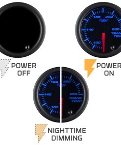 GlowShift’s Tinted 7 Color Series Transmission Temperature Gauge es esencial para cualquier vehículo con transmisión automática, especialmente camiones diésel que están remolcando cargas pesadas. Este medidor le permite monitorear de cerca la temperatura de su transmisión, asegurando que no se sobrecaliente causando daños críticos. El medidor de temperatura de la transmisión de GlowShift lee la temperatura de su transmisión de 80 a 260 grados Fahrenheit con el sensor electrónico de temperatura incluido de 1/8th NPT. Este medidor de temperatura de la transmisión cuenta con características increíbles que incluyen tecnología de motor paso a paso, una aguja roja iluminada, una lente ahumada de bajo perfil, así como iluminación LED a través del dial en 7 colores. El motor paso a paso incluido le brinda la combinación perfecta de lecturas de medidor extremadamente precisas con un movimiento de aguja increíblemente suave. La iluminación a través del dial en 7 colores de GlowShift le permite seleccionar entre 7 colores sólidos diferentes, junto con 2 modos de ciclo de color, que le permiten combinar las luces del tablero de fábrica o agregar un aspecto personalizado al interior de su vehículo. Conectar este medidor a su interruptor de faros de fábrica le permite atenuarse hasta un 30% para una conducción nocturna más fácil, y con la función de memoria de color, no tendrá que preocuparse por ajustar el color de su medidor cada vez que encienda su vehículo. El sensor de temperatura de la transmisión incluido de 1/8th NPT se instala fácilmente en el puerto de prueba de sus transmisiones o reemplazando su sensor de stock. Soporte de por vida: GlowShift respalda todos sus productos incluyendo soporte técnico gratuito de por vida y una garantía limitada de un año con cada compra de medidor.