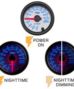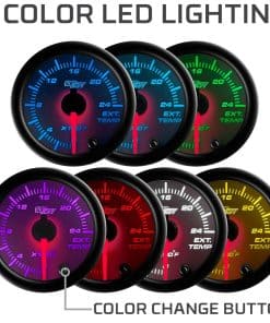 GlowShift’s White 7 Color Series 2400 Degree Exhaust Gas Temperature Gauge lee de 0 a 2400 grados Fahrenheit y es perfecto para cualquier vehículo de gasolina que tenga un turbo o sobrealimentador de serie o de mercado de accesorios, lo que le permite monitorear de cerca la temperatura de su motor para asegurarse de que no esté funcionando demasiado caliente, lo que podría resultar en una falla del motor. El medidor EGT de GlowShift cuenta con tecnología de motor paso a paso, iluminación de dial de 7 colores, una lente magnificada, así como una aguja iluminada en rojo fácil de leer. El motor paso a paso incluido le brinda a este medidor de pirómetro la combinación perfecta de lecturas de medidor excepcionalmente precisas junto con un movimiento de aguja increíblemente suave. La iluminación a través del dial de 7 colores de GlowShift le permite seleccionar entre 7 colores sólidos diferentes, junto con 2 modos de ciclo de color, lo que le permite combinar las luces del tablero de fábrica o agregar un aspecto personalizado al interior de su vehículo. Conectar este medidor a su interruptor de luces de fábrica le permite atenuar hasta un 30% para una conducción nocturna más fácil, y con la función de memoria de color, no tendrá que preocuparse por ajustar el color de su medidor cada vez que encienda su vehículo. Este medidor de temperatura de escape lee de 0 a 2400 grados Fahrenheit e incluye una sonda EGT de termopar tipo K que cuenta con roscas de 1/8-27 NPT, conector a prueba de agua y 3 pies de cable trenzado de acero. También se incluye un arnés de sensor de 6 pies con conector a prueba de agua que se conecta a la parte posterior del medidor y la sonda EGT, un arnés de alimentación de 2 pies, hardware de montaje e instrucciones de instalación. GlowShift respalda todos sus productos al incluir soporte técnico gratuito de por vida y una garantía limitada de un año con cada compra de medidor.