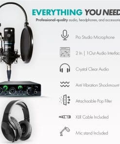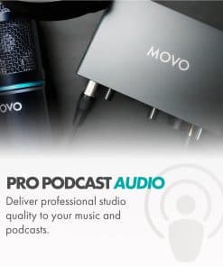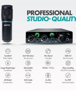 El kit de micrófono de condensador cardioide universal Movo PodPakA es el equipo perfecto para podcasters, músicos, streamers, Youtubers y más. Incluye la interfaz de audio MDX-1 de doble canal, que permite grabar y gestionar múltiples fuentes de audio para sesiones de grabación versátiles. Además, el micrófono de condensador cardioide Movo PC-M6 ofrece un sonido de calidad de radiodifusión de 48 kHz/16 bits sin latencia, alimentado por 48V de phantom power. El kit también incluye accesorios como un brazo de micrófono, montaje anti-vibraciones, filtro antipop, cable XLR, filtro antipop de doble capa y auriculares. Con una garantía de 1 año, puedes utilizar este kit con total tranquilidad sabiendo que estamos aquí para ayudarte en caso de problemas técnicos.