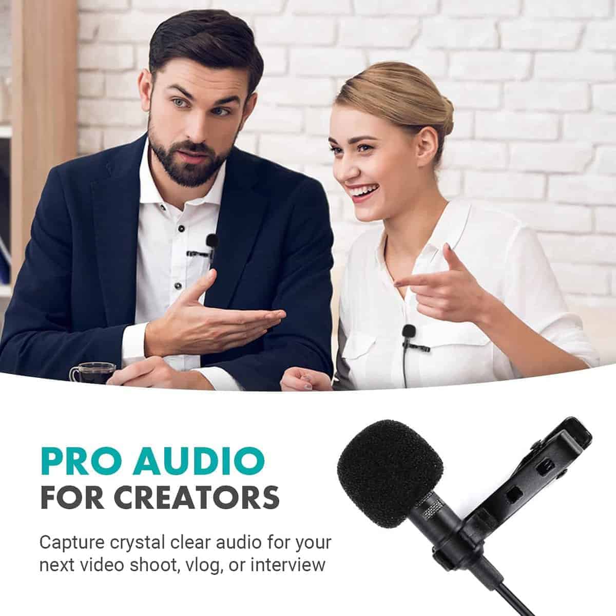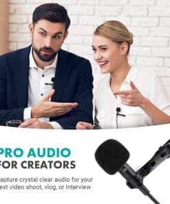 1. ELEVA TU AUDIO: Este versátil set de micrófonos de solapa es esencial para cualquier kit de producción de creadores. Con un micrófono de solapa omnidireccional y un micrófono de patrón cardioide, estarás listo para grabar en cualquier situación.