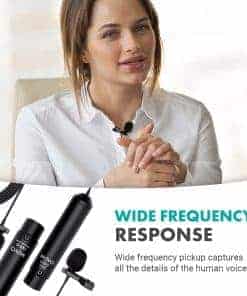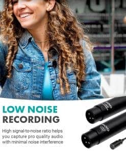 4. EN LA CAJA: Incluye un micrófono de solapa cardioide y un micrófono de solapa omnidireccional con cables de 6 pies adjuntos, conectores XLR metálicos blindados, clips metálicos para micrófono de solapa y paravientos extraíbles para bloquear ruidos no deseados.