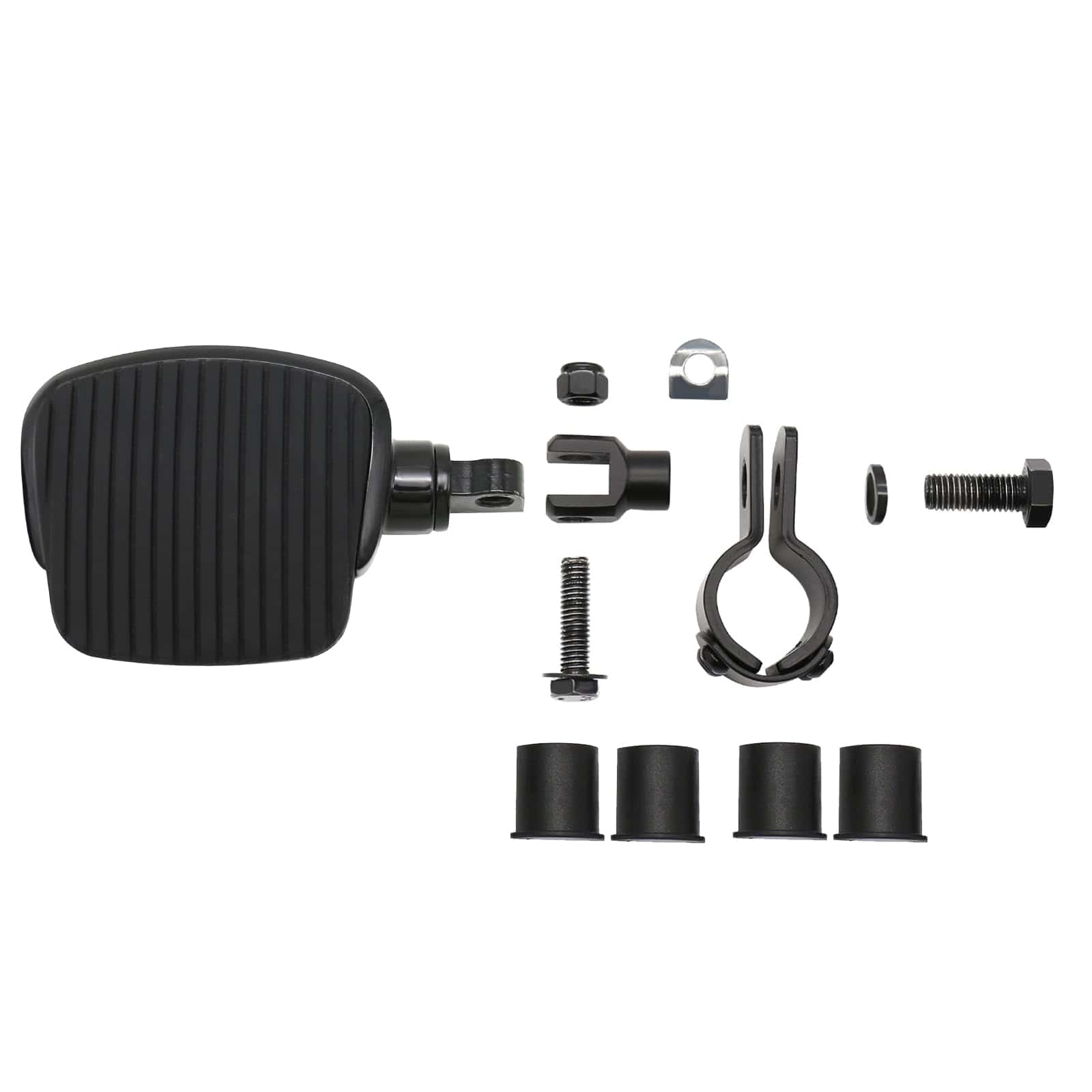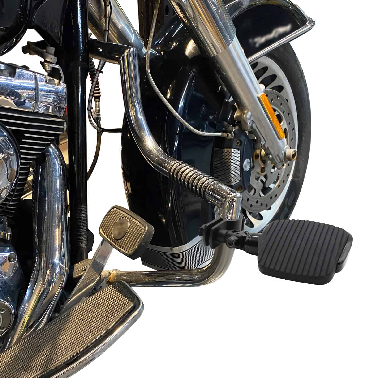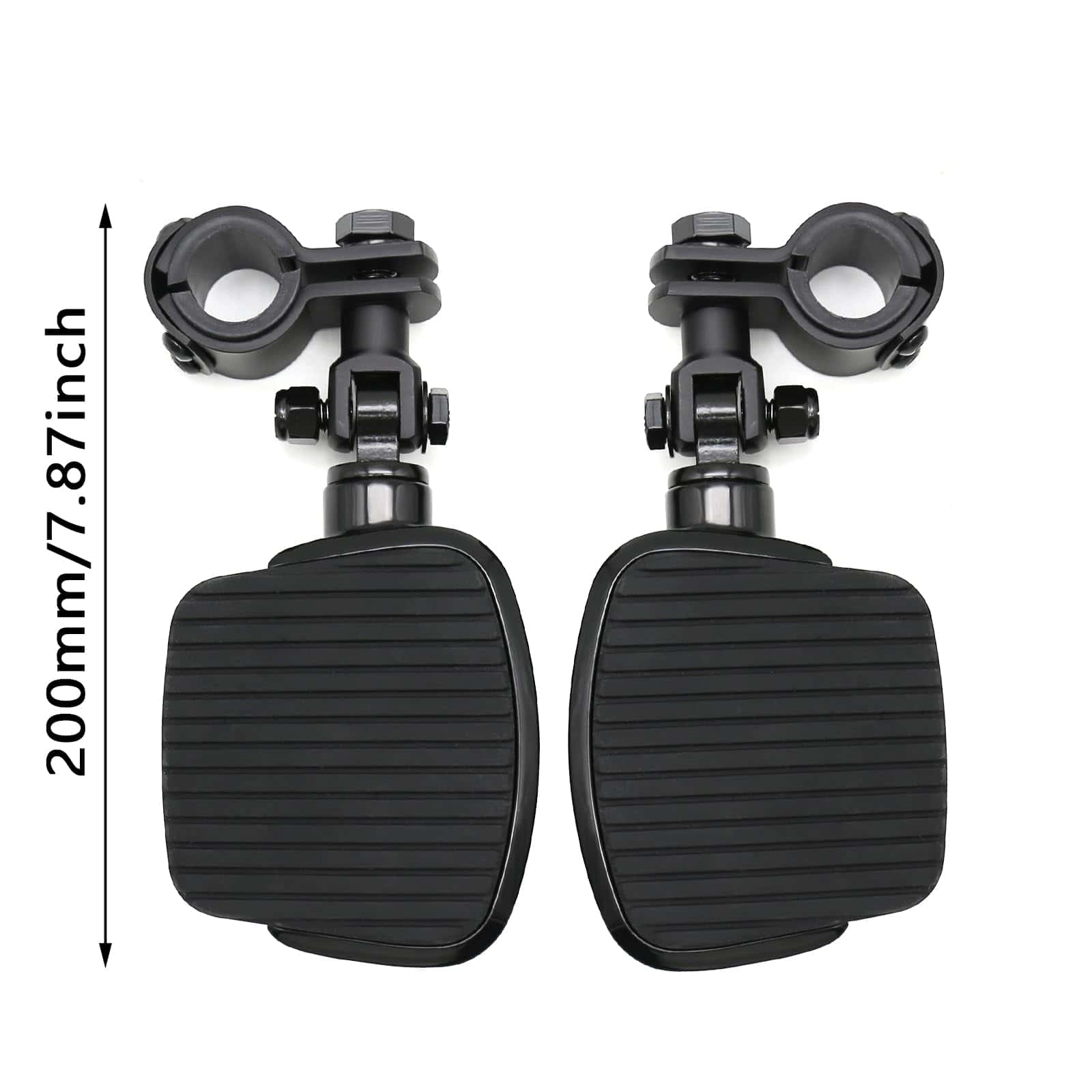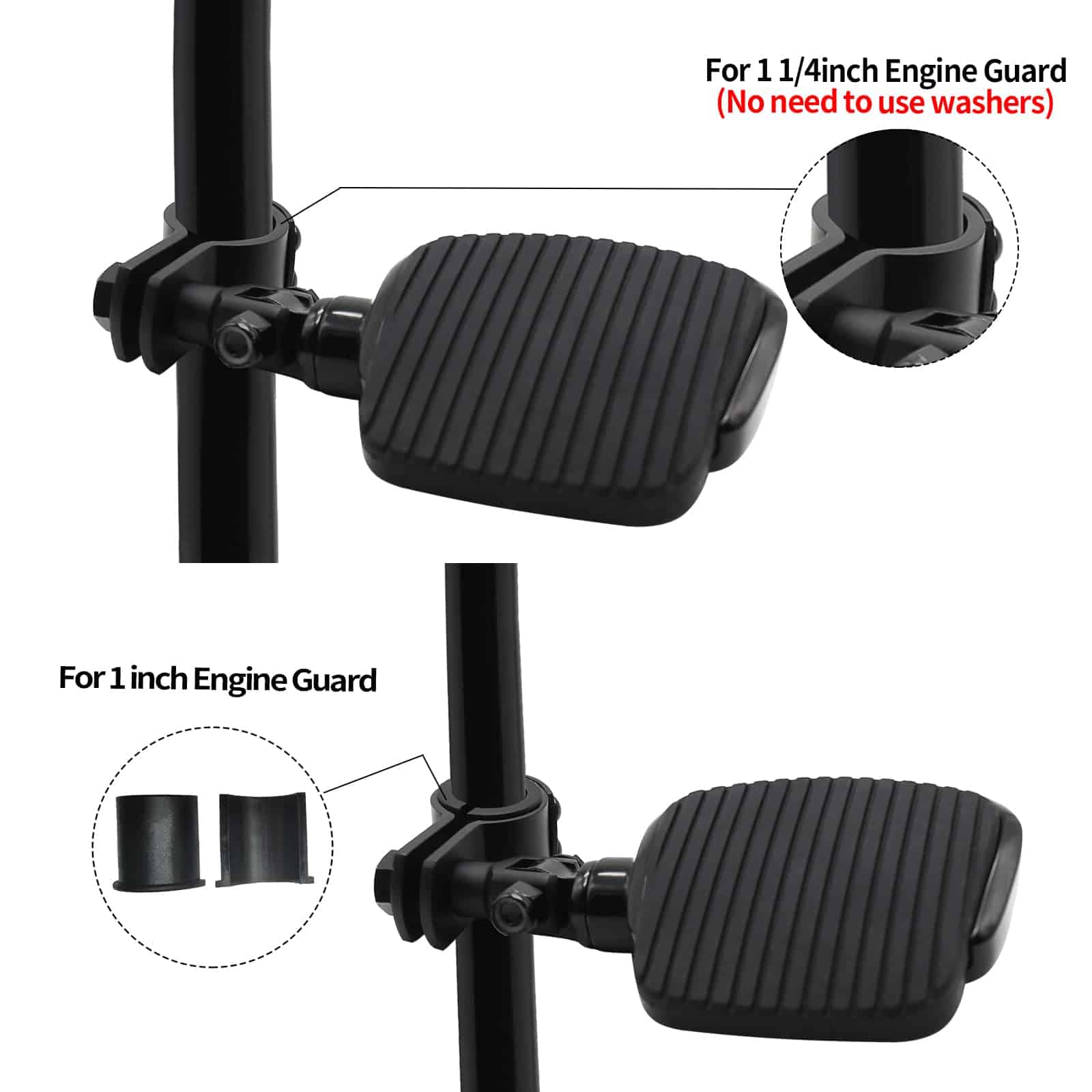 Kit de Mini Reposapiés de Motocicleta para Autopistas con Pinza de Montaje de Acero de Aleación Apto para Harley Honda Suzuki Kawasaki Yamaha, diseñado para proporcionar un poco de apoyo adicional para las piernas y más opciones para moverlas en un viaje largo. Compatible con modelos Harley Touring Sportster Dyna Softail con motor de 1-1/4 pulgadas; Compatible con Honda Suzuki Kawasaki Yamaha y otros modelos con Motor de 1 a 1-1/4 pulgadas o tubo redondo. Fabricado en aluminio macizo de alta resistencia y caucho de primera calidad, resistente y duradero. Fácil de instalar y viene con instrucciones detalladas. Si tiene alguna pregunta sobre la instalación o uso, no dude en contactarnos para obtener ayuda. Disfrute de la comodidad adicional que estos mini reposapiés pueden ofrecer en sus viajes en motocicleta.