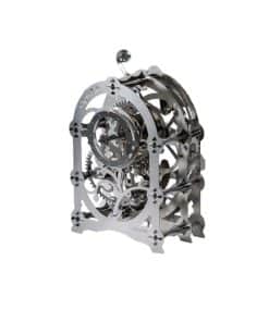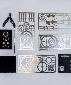 El kit de modelo de reloj Mysterious Timer 2 con KIT DE HERRAMIENTAS de Time for Machine: Este modelo vintage de reloj de metal está hecho de acero inoxidable y tiene un mecanismo de cuerda en movimiento que cuenta 60 minutos después de ser enrollado! El modelo es elegante, visualmente impactante y de alta calidad. Funciona con un resorte de cuerda y una palanca. ¡Proceso de bricolaje divertido con acero inoxidable de alta calidad! Debido a su belleza vintage, nuestro modelo de metal DIY y coleccionable es el regalo perfecto (¡Caja de Regalo incluida!) para cualquier entusiasta de modelos o coleccionistas a quienes les gustan las decoraciones elegantes para escritorios, estanterías o interiores! Establecemos un alto estándar para los kits de modelos de metal, rompecabezas 3D y sets de bricolaje porque la calidad (¡y tu disfrute!) es importante para nosotros. TRES CARACTERÍSTICAS PRINCIPALES ÚNICAS: Diseño increíblemente hermoso de reloj vintage Mecanismo en movimiento y piezas interactivas a diferencia de muchos otros modelos Acero inoxidable de alta calidad y satisfactorio proceso de bricolaje INFORMACIÓN TÉCNICA: Tamaño del paquete: 255 x 125 x 23 mm Tamaño del modelo: 116 x 84 x 71 mm Set: 4 placas con piezas, 8 engranajes adicionales, resorte, paño para pulir e instrucciones. Material: acero inoxidable pulido. Número de piezas: 62 piezas Edad recomendada: 14+ Idioma de instrucción: inglés, ucraniano, alemán, francés, español, ruso.