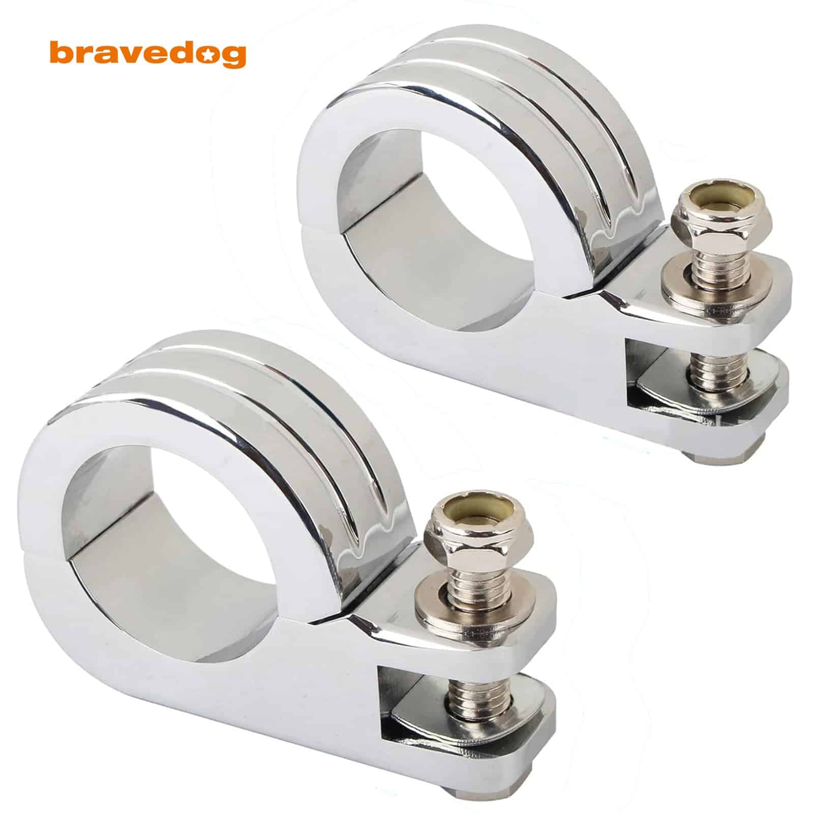 Estas estriberas de carretera para motocicletas se montan en el guardabarros para una posición de conducción más cómoda. Fácil instalación en cualquier motocicleta Harley o Métrica con guardabarros delanteros de 1″ a 1-1/4″ (25mm-32mm). Estas estriberas de carretera cuentan con un diseño plegable y se pueden instalar en cualquier tubo redondo (marcos o guardabarros). Estriberas de Carretera para motocicletas con Abrazaderas para Estribos de Motor