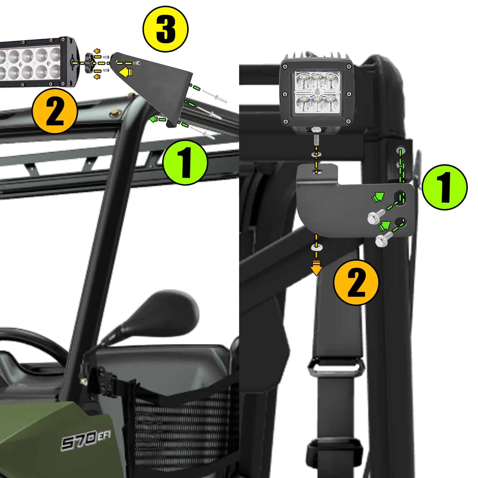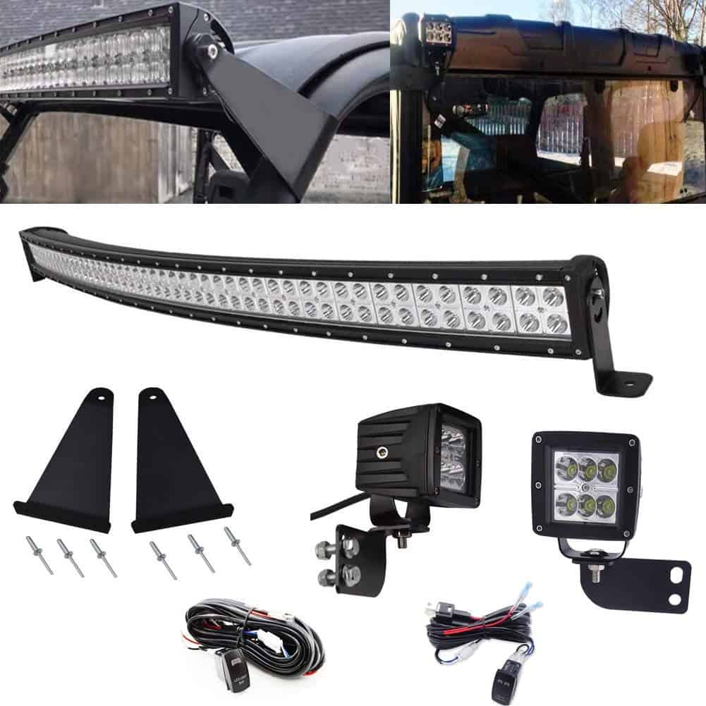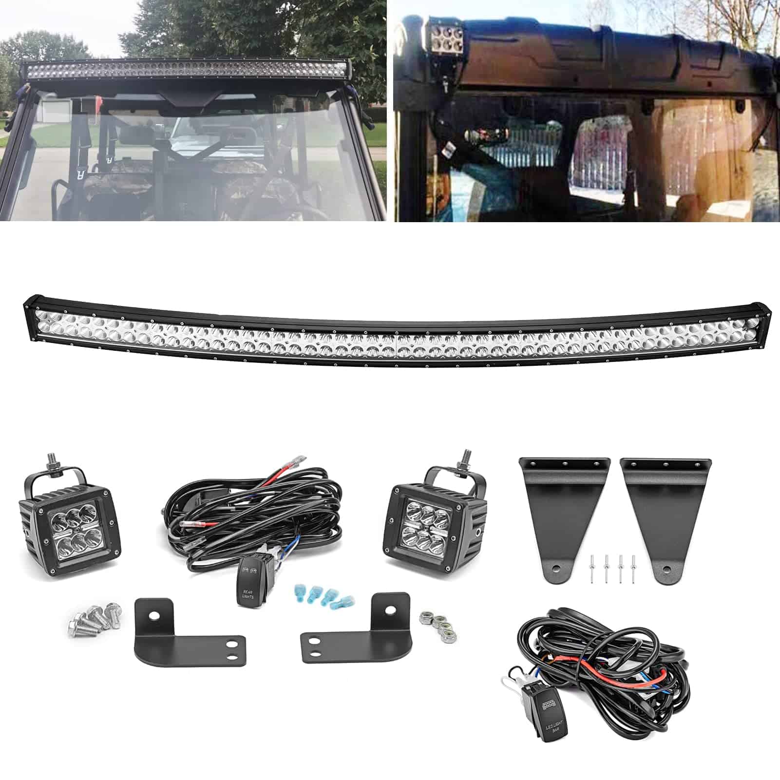 Fitment: 2013-up Polaris Ranger 900 Models 2013-up Polaris Ranger XP 1000 Models 2013-up Polaris Ranger 570 full-size Specifications: – 50″ 288W Led Light Bar: Power: 288 Watt Voltage: 9-32V DC Beam Angle: Combo (spot&flood) LED color: White (6000K) Raw Lumens: 28800 lms Material: Aluminum Alloy Metal Housing, PC Lens Waterproof Level: IP67 Life Span: 30,000 hours Product Features: 1. Aluminum Alloy Housing. 2. Waterproof, dust-proof, quake-proof, anti-corrosion for harsh environment. 3. Steel Mounting Brackets. Long service time. Package Includes: – 1 288W 50″ Led Light Bar – Upper Roof Mounting Brackets – Wiring Harness for 50in light bar – 1 18W 3″ Led Light Pod – Side Pillar Mounting Brackets – Wiring Harness for 3in light pod
