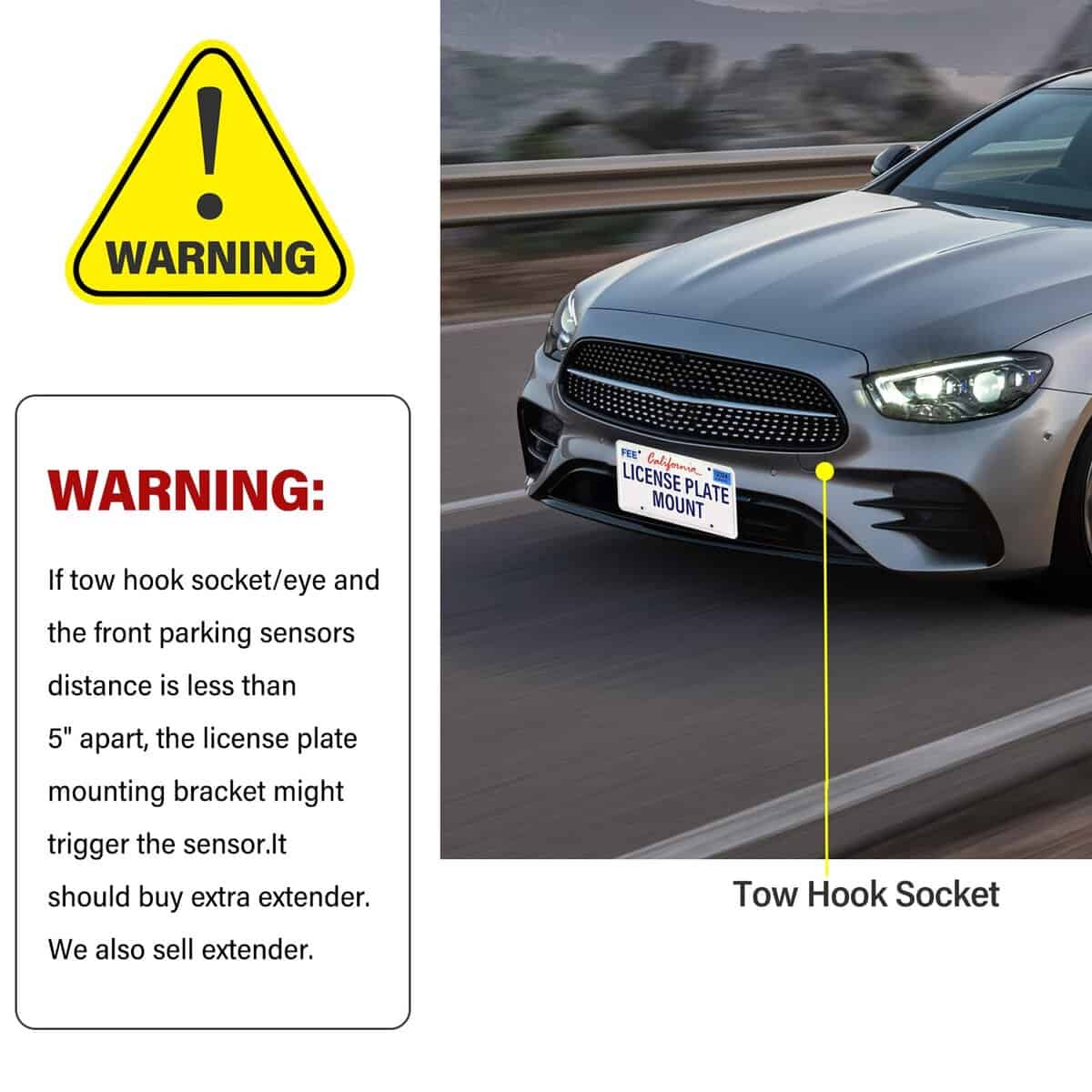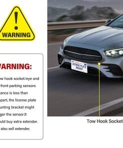 4. INSTALACIÓN SIN RIESGOS: Instalación fácil y sin riesgos, puedes utilizar los agujeros de remolque existentes en el parachoques, atornillar directamente en los agujeros de remolque delanteros del coche, no es necesario taladrar agujeros o modificar en el coche nuevo, puedes instalar el marco de la placa de matrícula en minutos.