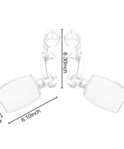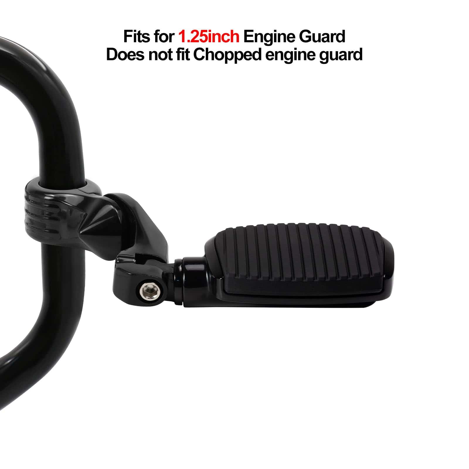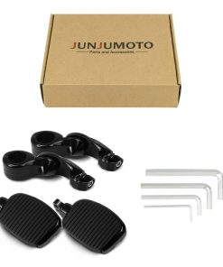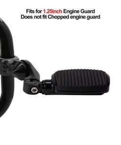 1. Ajuste: Compatible con Harley Touring Road King Road Glide Street Glide Electra Glide Sportster Dyan Softail con barra de carretera de 1.25 pulgadas (32 mm). 2. Plataforma Pequeña: Construida con aluminio duradero y acabado negro; Caucho de primera calidad que no se despega fácilmente. El caucho de agarre de la suela agrega aislamiento de vibraciones y una apariencia elegante. 3. Brazo Corto: Diseño estable de última generación y agarre firme en la barra del motor; Los reposapiés de carretera son ajustables a 360 grados, para que puedas elegir un ángulo y posición cómodos, ideal para conductores altos. 4. Instalación Fácil: Fácil de instalar, los reposapiés de carretera vienen con un manual de instrucciones. 5. Incluido en el Paquete: 1 par de reposapiés de carretera + Kit de Montaje (como se muestra en la imagen)