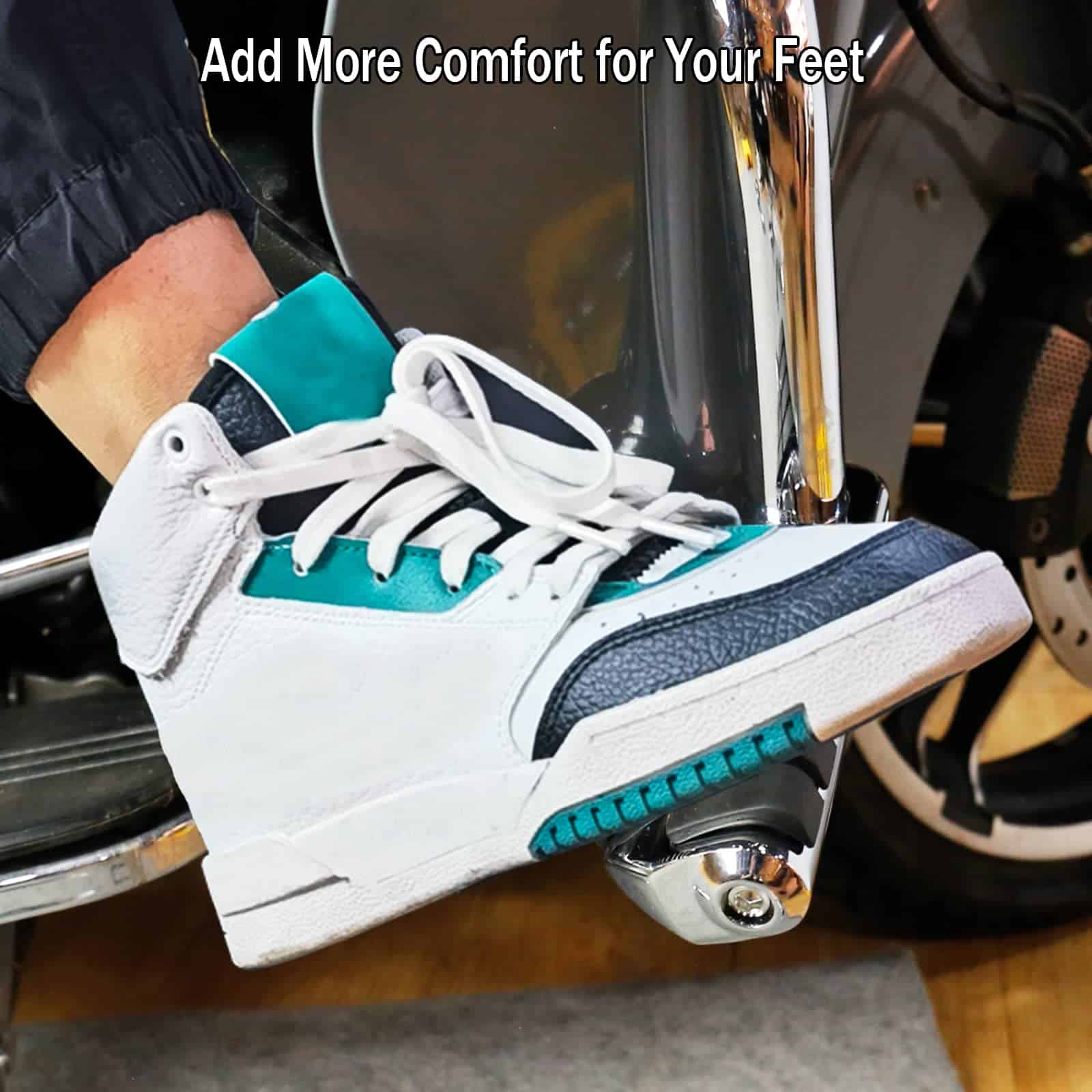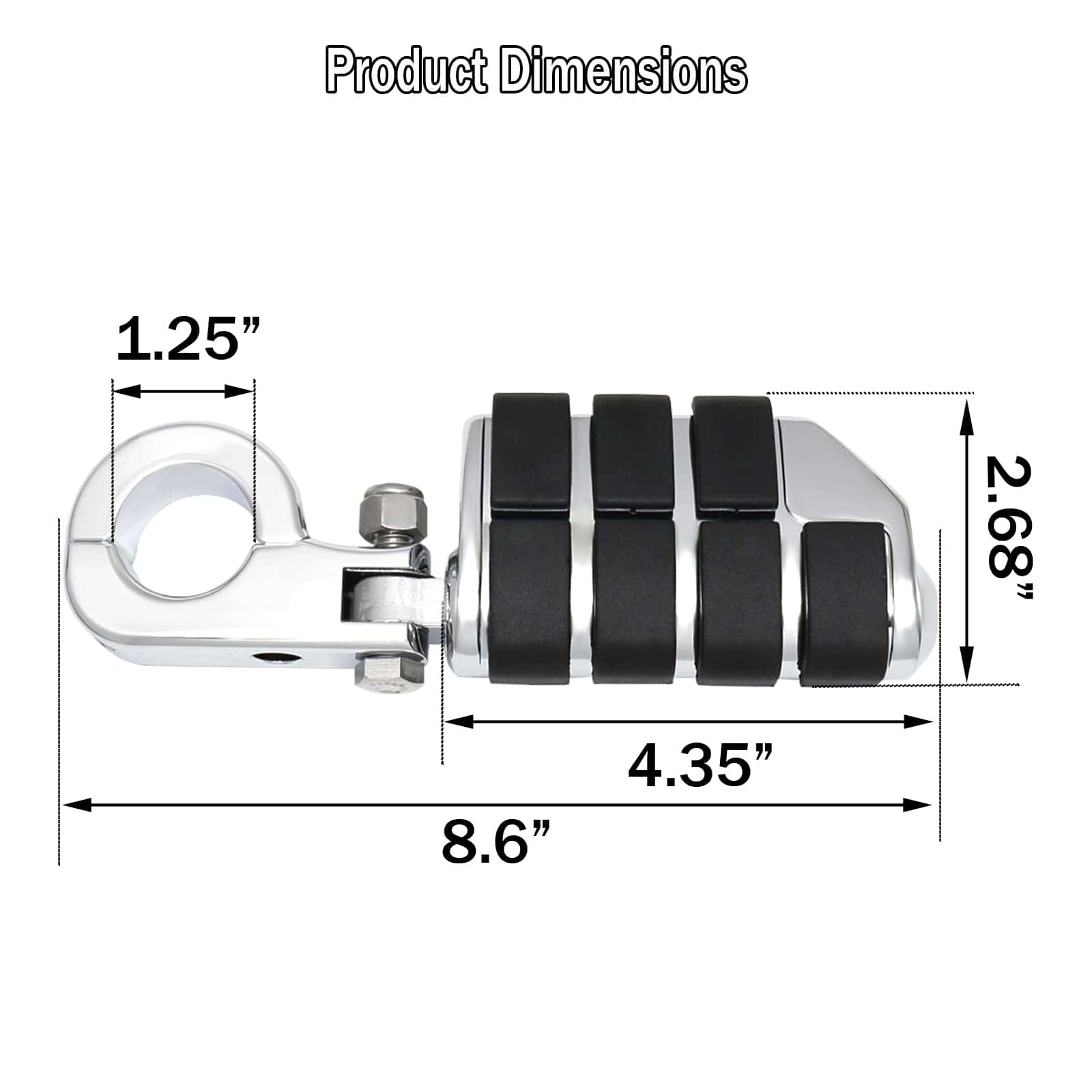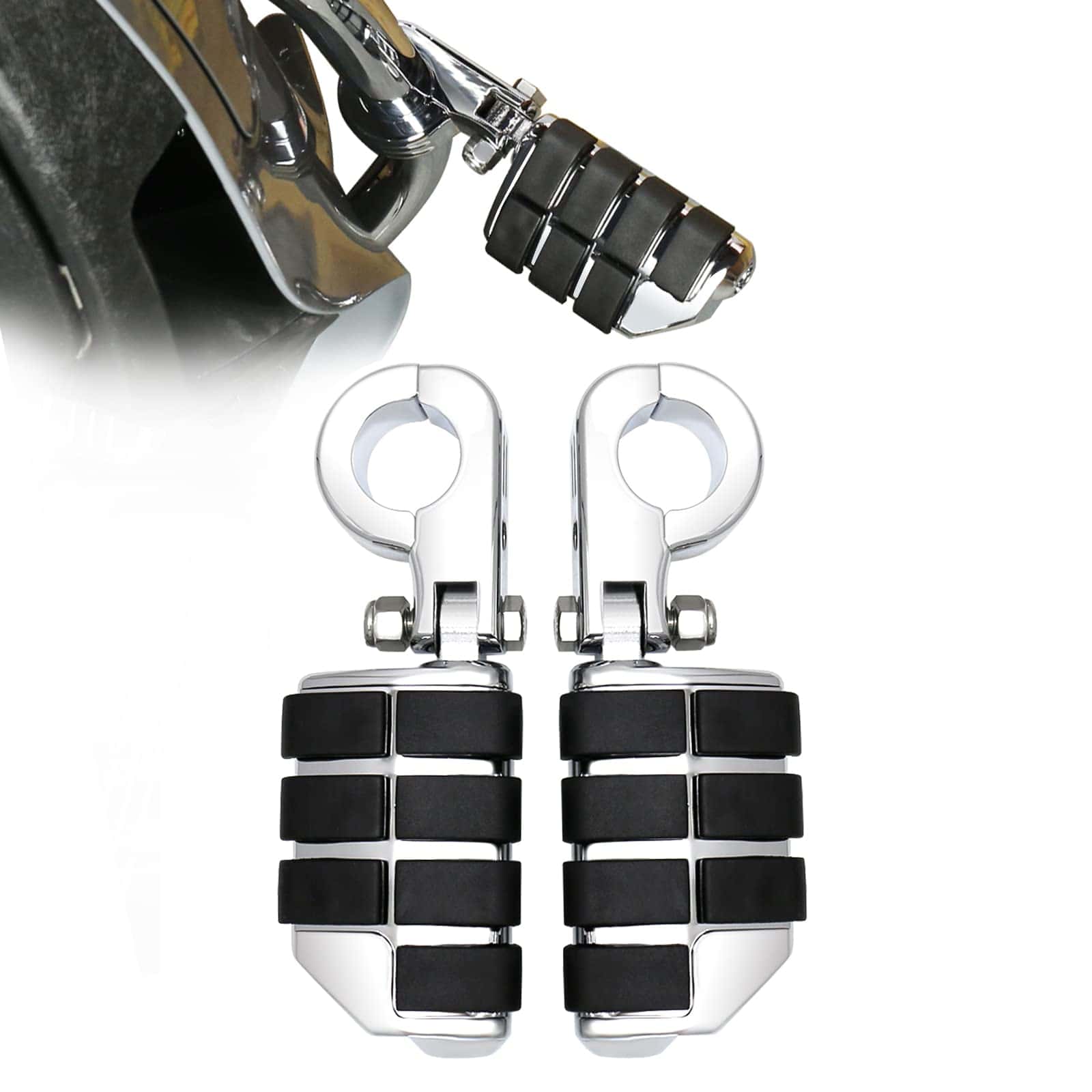 Kit de montaje de reposapiés ajustable para motocicleta, ideal para defensas/barras de choque de motor de 1.25 pulgadas. Hecho de aleación de aluminio de primera calidad mecanizado CNC con inserción de goma, este kit es resistente al desgaste, antideslizante y te proporcionará una sensación cómoda en los pies. Compatible con modelos Harley Sportster Softail Touring Road Glide Road King Street Glide Electra Glide (excepto ciertos modelos de defensas). Ajuste de ángulo de 360 grados para una personalización óptima. Proporciona comodidad adicional en tus viajes largos, permitiéndote relajar los pies. La abrazadera de montaje mejorada con diseño de bloqueo de 4 tornillos garantiza una fijación segura a la defensa del motor. Mejora el estilo y la impresión de tu motocicleta con este kit de montaje de reposapiés de autopista.