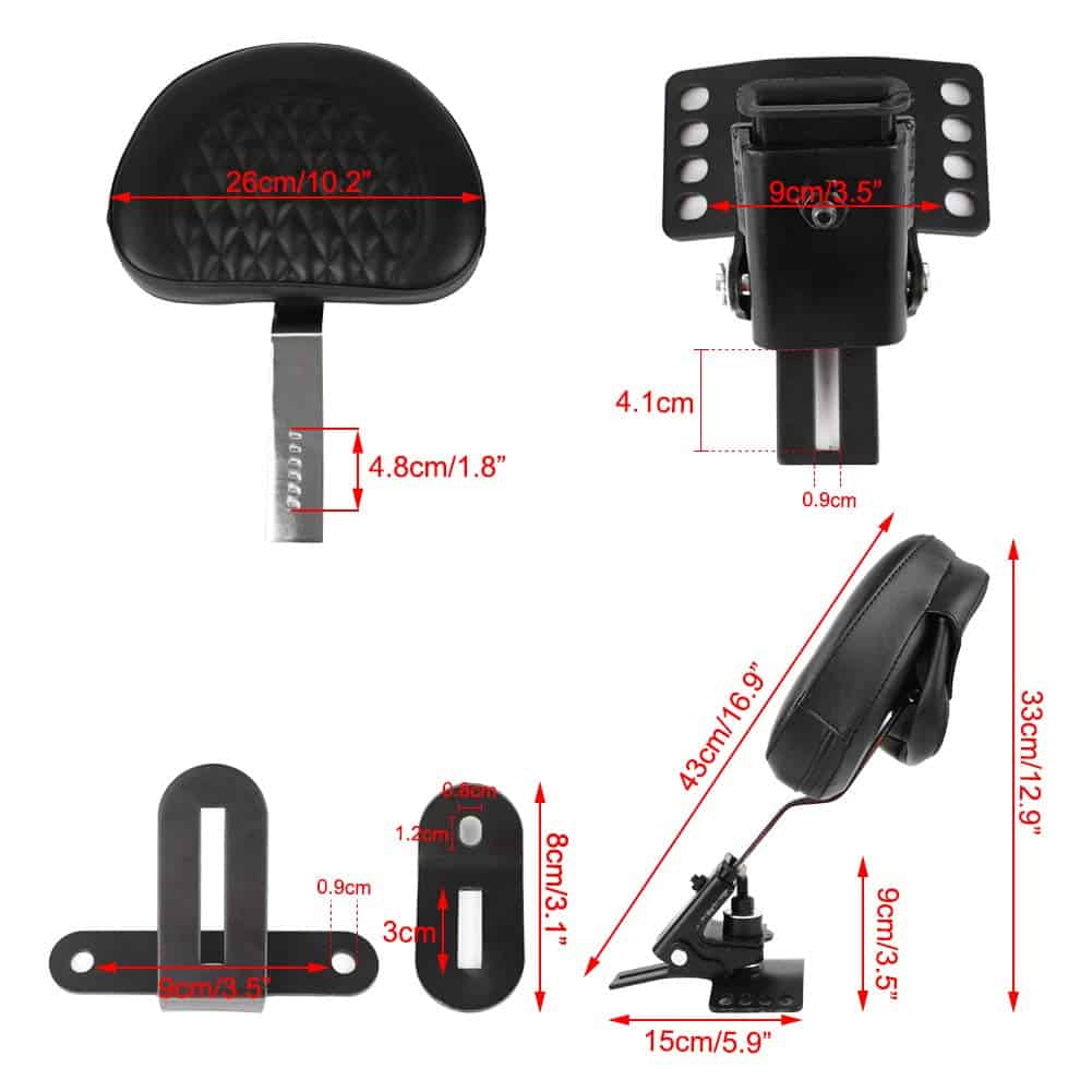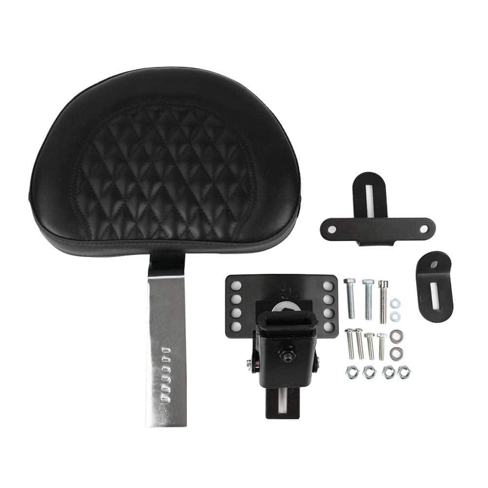 1. Aumenta la comodidad y el soporte para largos recorridos en motocicleta. 2. Ajustable en altura para una posición de conducción más cómoda. 3. Complementa los asientos de Harley-Davidson para mayor comodidad. 4. Compatible con modelos Harley Touring Road King Street Glide Ultra 1997-2018. 5. Incluye base de montaje, soporte y tornillería.