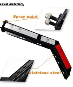Soporte de aletas de barro anguladas en negro con resorte cargado y espaciado de perno de 2-1/2″, de 30″ de longitud. Instalación sencilla sin necesidad de cortar o taladrar. Fabricado con acero resistente de alta calidad con acabado en negro, resistente y a prueba de óxido en diversas condiciones climáticas. Comprometidos a brindar el mejor servicio y valor a los consumidores, con garantía de calidad del producto. Si tiene alguna preocupación o pregunta, no dude en contactarnos.