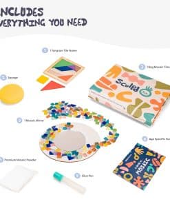 ¡Deje que los más pequeños desaten su creatividad con este increíble kit de mosaicos! ¡Aprenderán a crear un impresionante espejo de mosaico que se convertirá en la pieza central de su habitación!