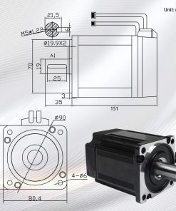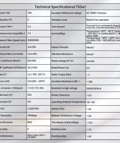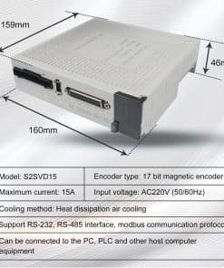 Motor con parámetros Modelo: A2M-80SV02430Z; Con freno: Sí; Potencia: 750W; Número de polos: 5 pares; Alimentación nominal: 220V; Velocidad nominal: 3000r/min; Velocidad máxima: 6000r/min; Par nominal: 2.4N.m; Par máximo: 7.2 N.m; Corriente nominal: 4.8A; Corriente máxima: 14.4A; Resolución del encoder: 10000ppr; Estructura de protección: IP65; Resistencia al impacto: 98m/s ; Resistencia a la vibración: 49m/s. Motor de triple sobrecarga/potente Los motores están hechos de materiales de alta calidad con capacidad de sobrecarga 3 veces mayor, observador de parásitos incorporado, resistencia extremadamente fuerte a las perturbaciones externas y operación estable. El motor también tiene características como: alto par, sin pérdida de pasos, bajo ruido, respuesta rápida, tamaño pequeño, alta controlabilidad, y ha sido operado.