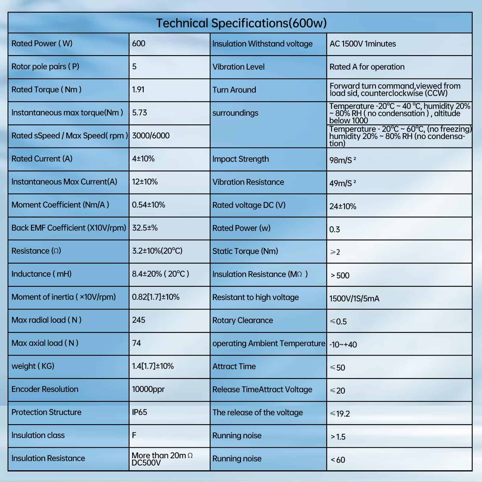 El kit incluye un motor servo de 600W sin freno y un controlador de motor con múltiples funciones, como dirección y control de pulsos, control de posición, velocidad, torque y extensión. Adecuado para una variedad de equipos de automatización e instrumentos, como máquinas de tornillo, equipos médicos, equipos semiconductores, equipos de grabado, carros AGV, etc.