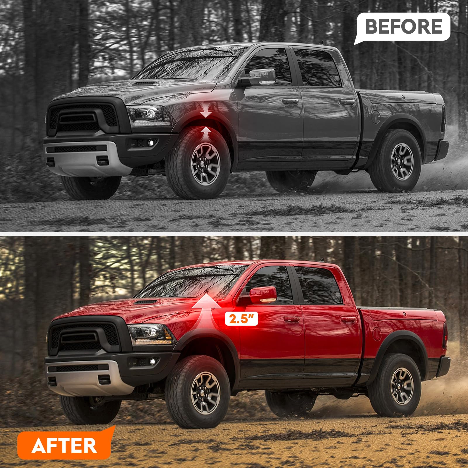 NOTAS: Mejora la parte delantera de tu camión en 2.5 pulgadas, la relación entre la altura de elevación y el grosor del kit no es 1:1