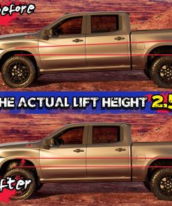 Este kit puede aumentar la distancia al suelo y nivelar la parte delantera y trasera del vehículo manteniendo la calidad de conducción de fábrica. Se permiten llantas y neumáticos más grandes después de instalar este kit.