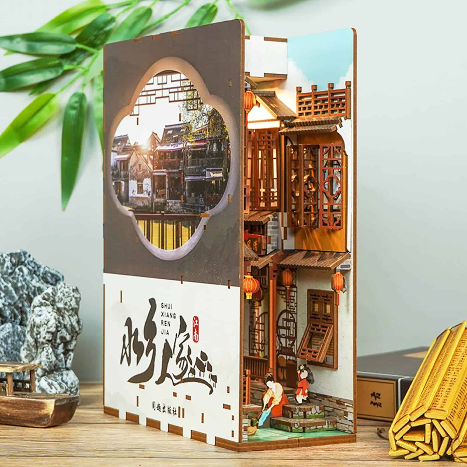 3. Pasa tiempo de calidad con la familia —- Este kit de Miniatura de Nook de Libros DIY es un buen proyecto para hacer en tu tiempo libre con tus seres queridos. En lugar de pasar tiempo en tu teléfono móvil, televisión, etc. Armar esta casa de muñecas de soporte de libros es también una buena manera de comunicarte con tu familia, la paciencia es la clave del éxito. Experimenta los placeres de las cosas hechas por ti mismo. Sentirás un sentido de logro cuando se complete el kit en miniatura.