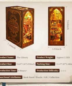 El kit de diorama de estantería es un espacio especial donde el arte y el conocimiento se cruzan. La biblioteca es uno de los lugares importantes para que las personas adquieran conocimiento, y las estanterías muestran libros de todo el mundo. Las exquisitas mesas, sillas y telescopio astronómico en el primer piso muestran un entorno cómodo para la lectura.
