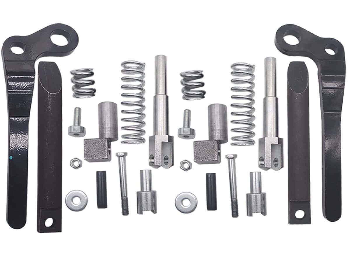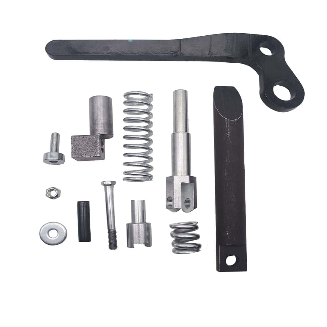 Incluyendo todo el kit necesario: Cuña Pivot 7252989; Palanca Izquierda (LH) 6702903, Palanca Derecha (RH) 6702904; Resorte 6713040; Arandela 619021; Tuerca 85D6; Perno 17C660; Pasador cuña 6737191; Perno 7255136; Resorte de compresión 6578253; Pasador de chaveta 14J5032; Buje 6702958; Cuña Pivot 6731119