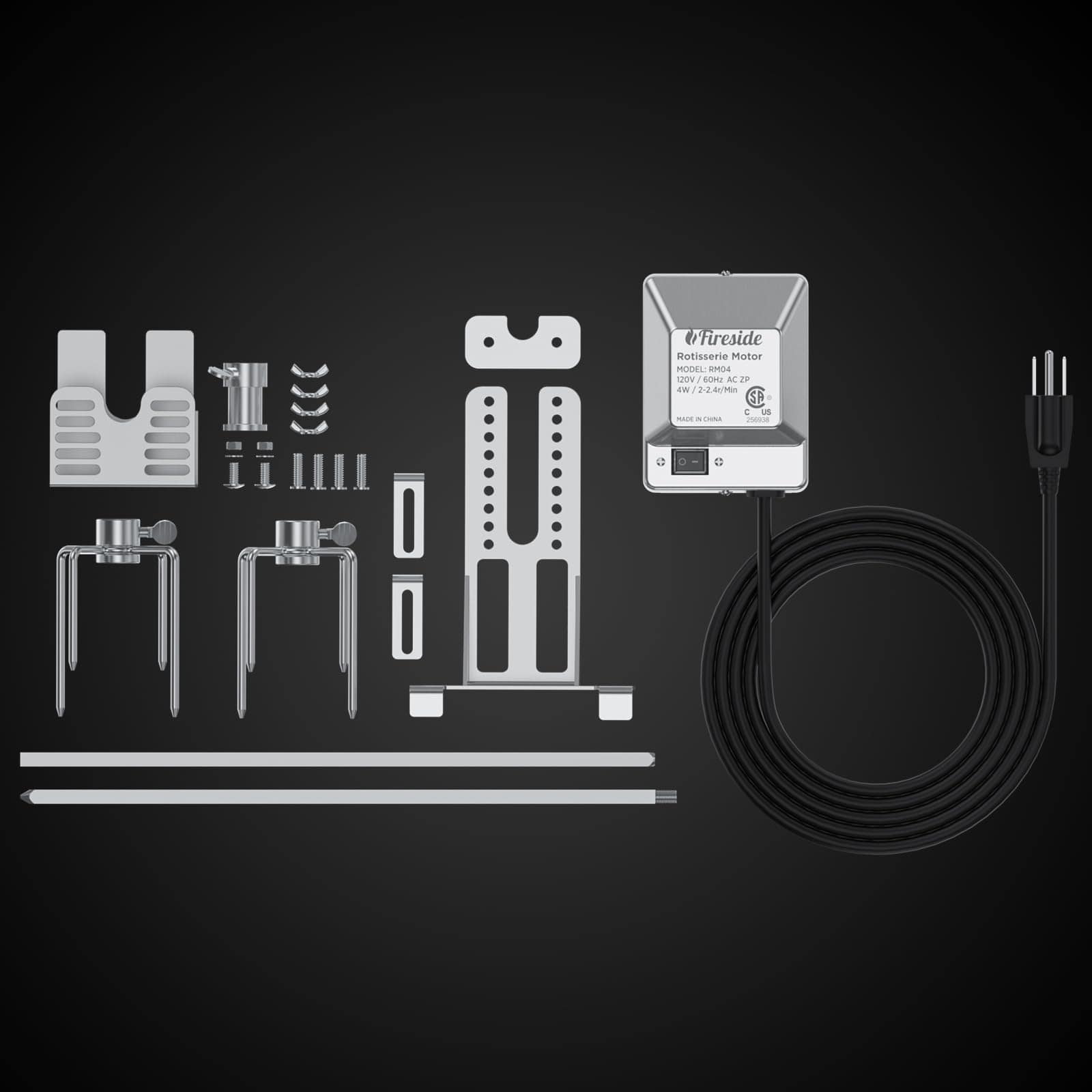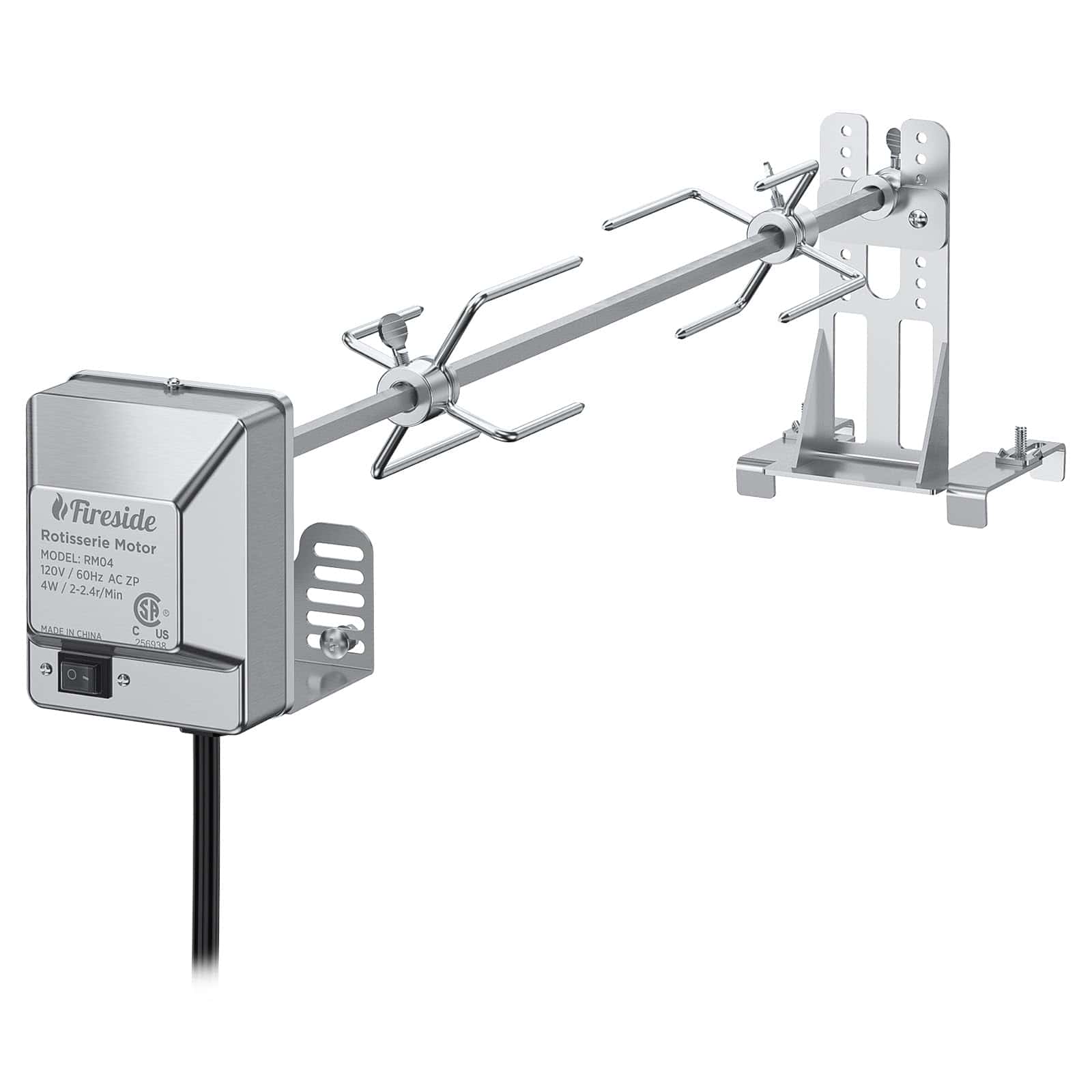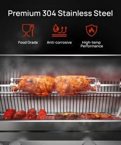 2. Comodidad Electrizante ¡Olvida las molestias de la rotación manual! Nuestro motor eléctrico de 4W garantiza una rotación constante de 2-2.4 RPM, cocinando uniformemente carnes de hasta 30 libras. El cable de alimentación de 59 pulgadas ofrece una flexibilidad adecuada para instalar su parrilla dondequiera que la inspiración lo golpee.