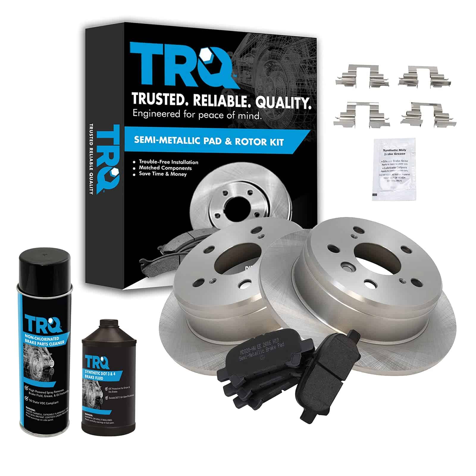 Los kits de freno TRQ están diseñados para restaurar su sistema de frenos a un rendimiento como nuevo. Las pastillas de freno TRQ son moldeadas positivamente, chamuscadas térmicamente, biseladas y utilizan una doble capa de amortiguador para un rendimiento mejorado y una vida útil prolongada. Los rotores TRQ tienen un acabado no direccional que reduce el período de adaptación para rotores nuevos, así como las vibraciones a lo largo del ciclo de vida del rotor. Todos los productos se prueban en carretera en nuestra instalación de I&D en Massachusetts para garantizar que cumplimos nuestra promesa de Calidad Confiada y Confiable.