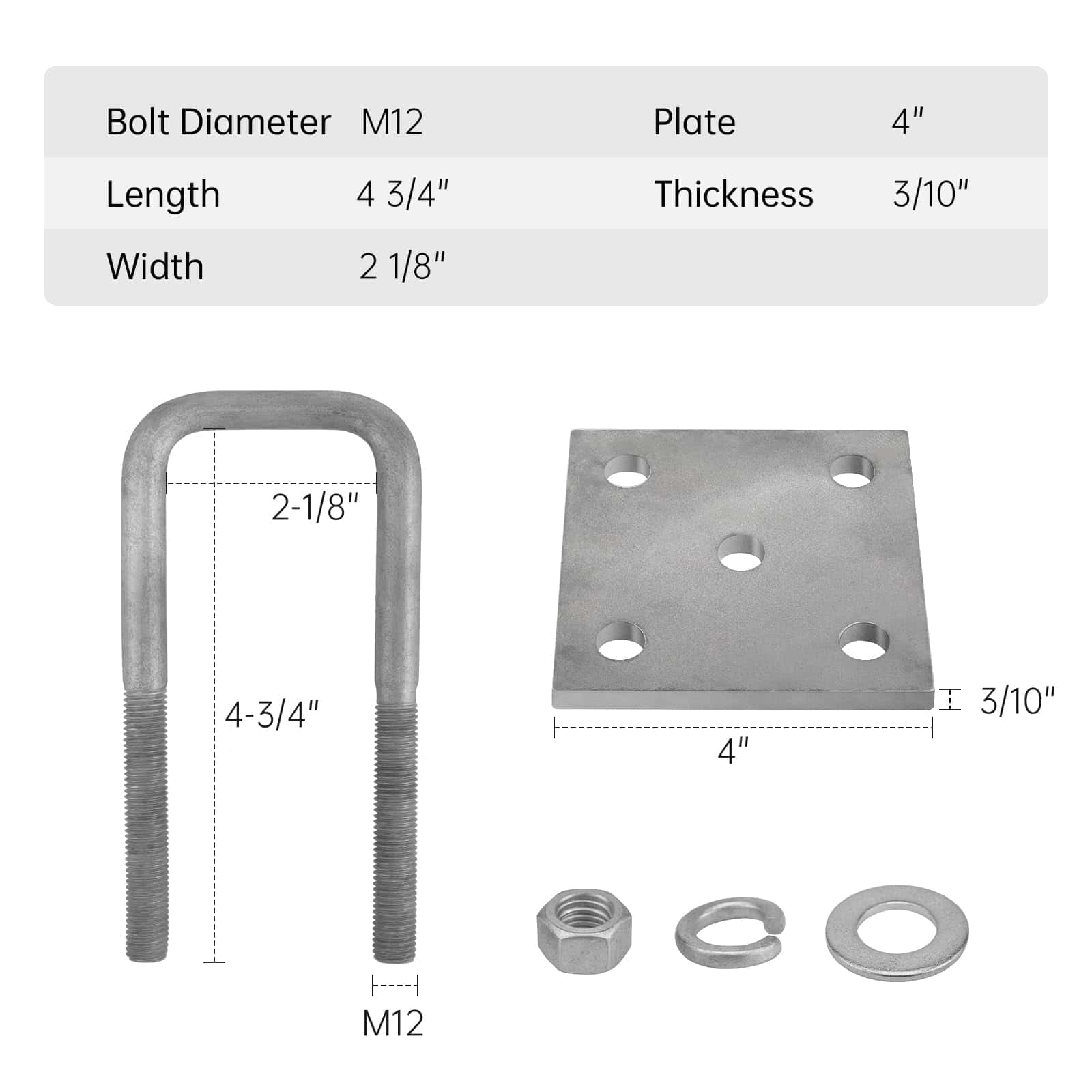 Kit de Perno en U de Eje de Remolque de Barco Galvanizado