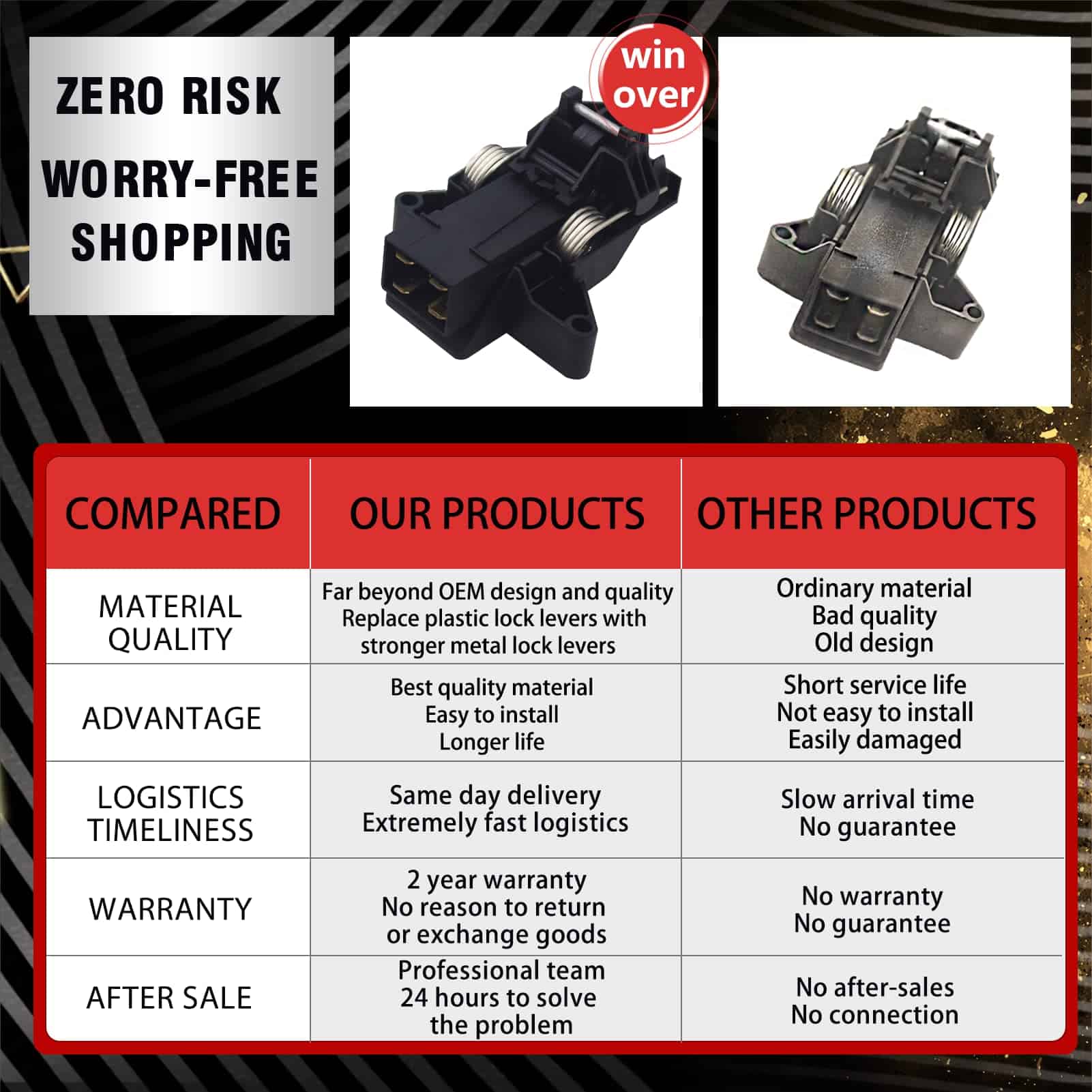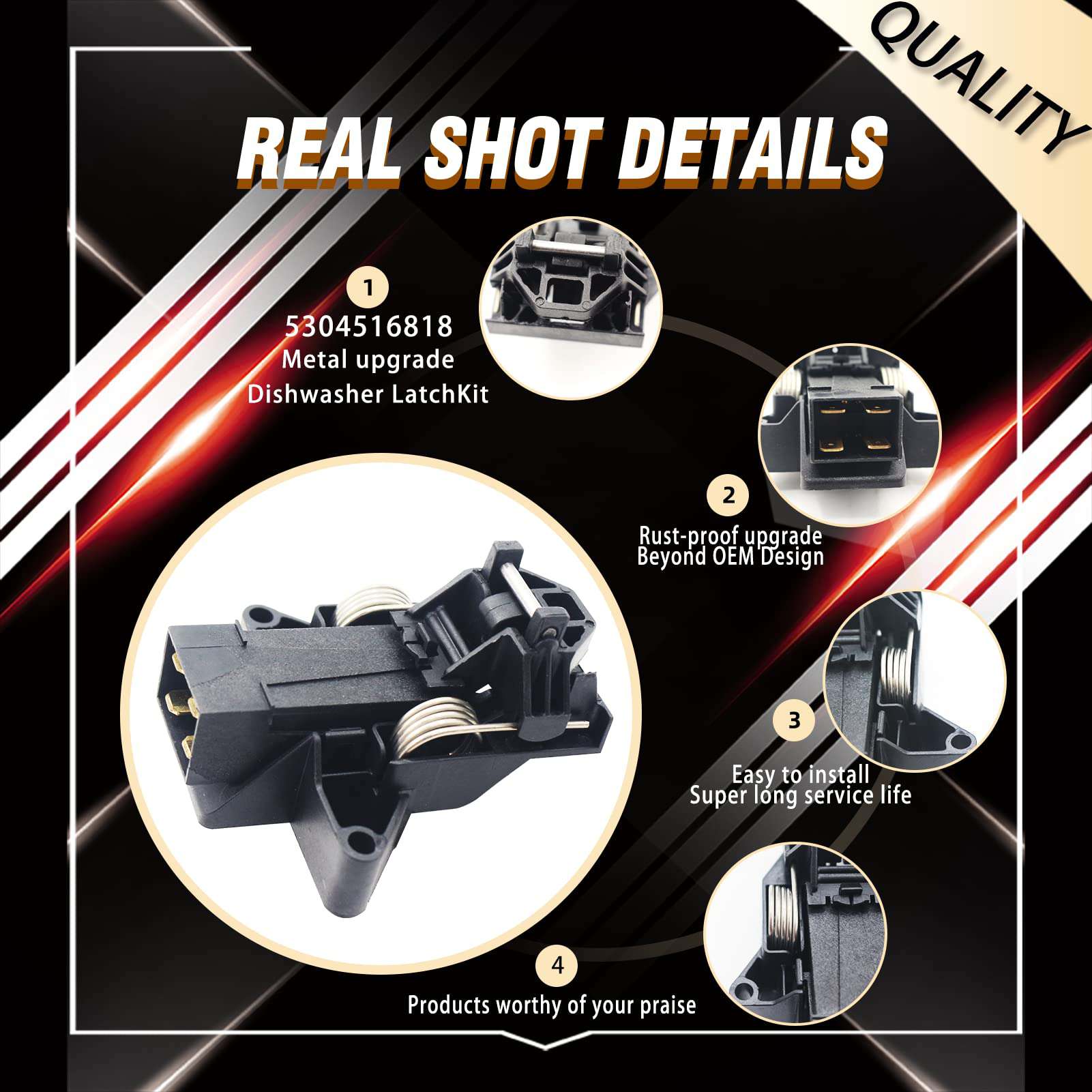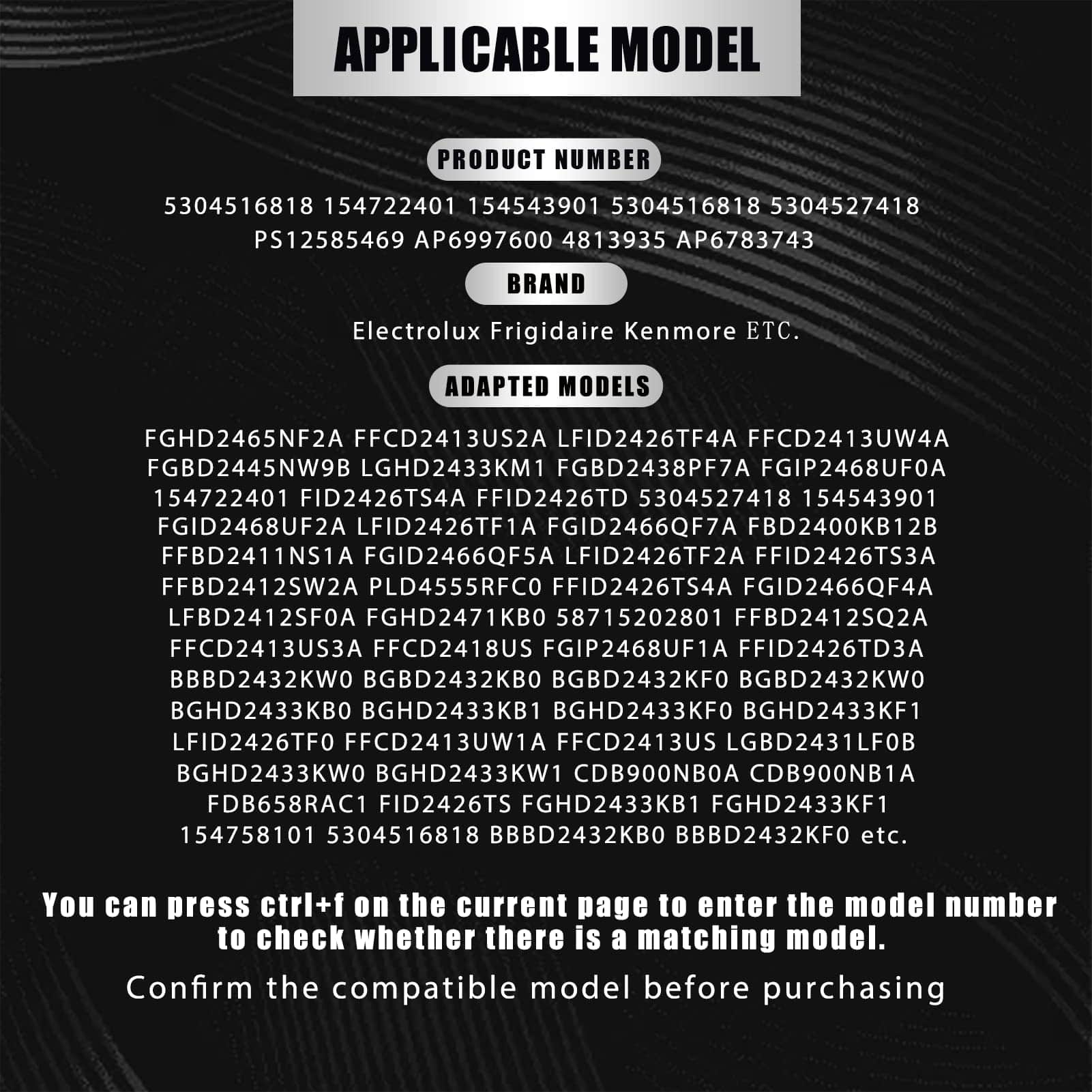 El diseño del pestillo de puerta 5304516818 actualizado supera al OEM con material de calidad y mano de obra. Reemplaza los seguros de plástico por seguros de metal más resistentes, extendiendo la vida útil y solucionando el problema anormal de cierre y apertura de la puerta del lavavajillas. Fácil de instalar, puede buscar el número de modelo 5304516818 en YouTube para encontrar el video de instalación correspondiente. Este kit de pestillo de puerta es compatible con los lavavajillas Electrolux Kenmore Frigidaire, como FFBD2412SW2A, PLD4555RFC0, FFID2426TS4A, FGID2466QF4A, LFBD2412SF0A, FGHD2471KB0, 58715202801, FFBD2412SQ2A, FGBD2445NW9B, LGHD2433KM1, FGBD2438PF7A, FGIP2468UF0A, FFBD2411NS1A, FGID2466QF5A, LFID2426TF2A, FFID2426TS3A, etc. Para obtener una lista completa de modelos compatibles, consulte la página de detalles del producto. Prestamos especial atención a la calidad de nuestros productos y la experiencia de compra de nuestros clientes. La calidad del producto es nuestra prioridad, la satisfacción del cliente y la experiencia de compra sin preocupaciones son nuestro objetivo. Nos comprometemos a brindar soluciones a cualquier problema de calidad del producto para que pueda comprar con confianza.