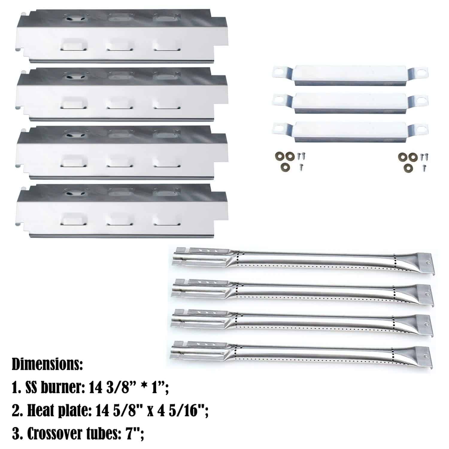 Kit de Piezas de Repuesto DG157 para Parrillas de Gas Char-broil – Compatible con modelos 4363420507, 463420509, 463460708, 463460710; Números de Partes Originales: 80008074, G433-0016-W1, G4330016W1, G433 0016 W1, G431-0300-W2, G4310300W2, G431 0300 W2, 80009947, G413-0004-W2, G4130004W2, G413 0004 W2, 80009949. Kit incluye 3 tubos de transferencia de acero inoxidable, 4 quemadores de acero inoxidable y 4 placas de calor de acero inoxidable;