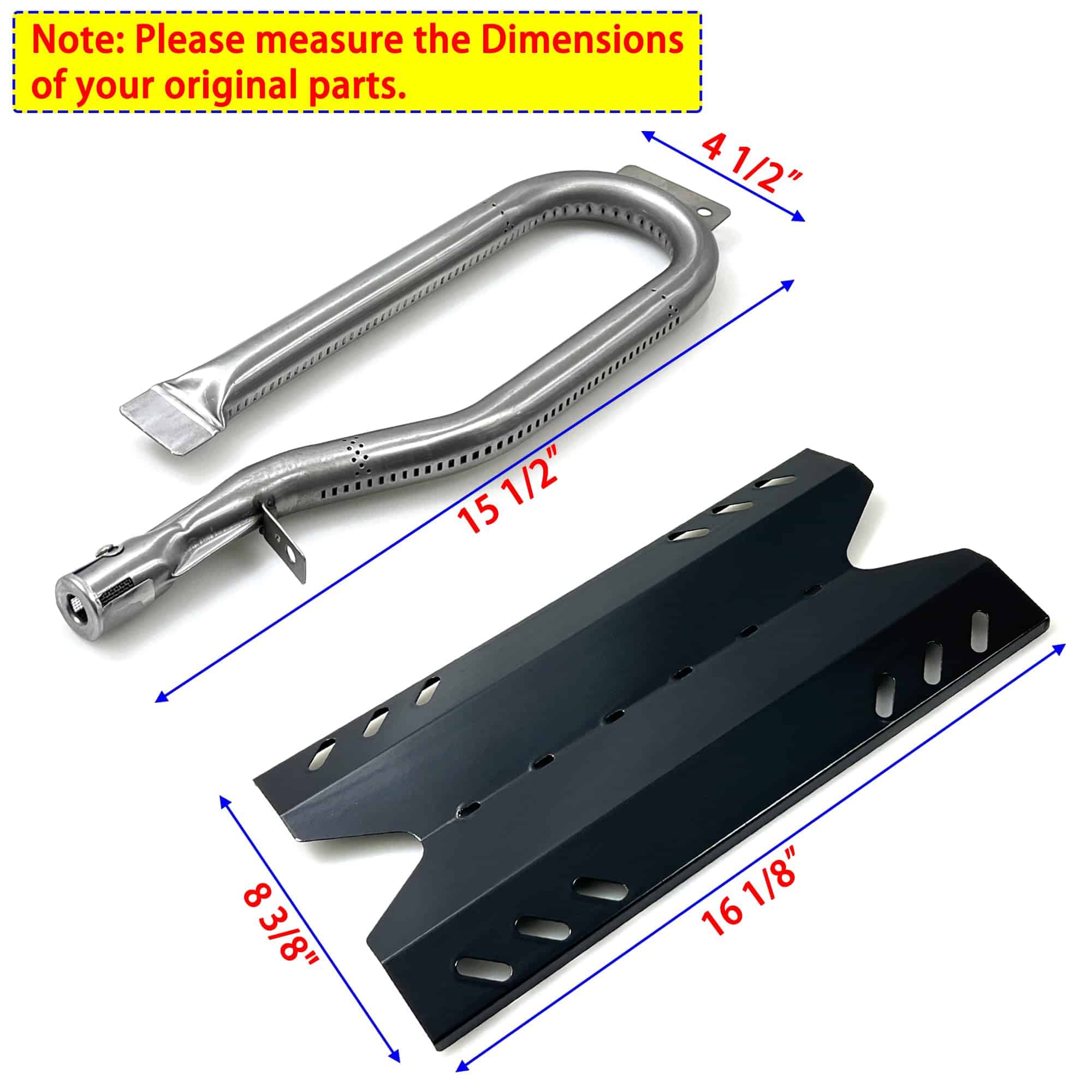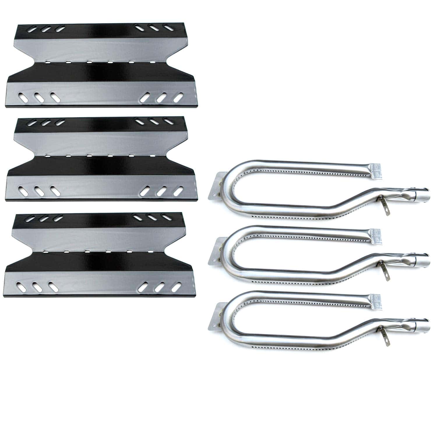 Kit de Piezas de Repuesto DG186 para parrillas a gas Outdoor Gourmet, Sam’s Club, BBQ Pro – Incluye 3 quemadores de acero inoxidable y 3 placas de calor de acero porcelanizado; Dimensiones del quemador: 15 1/2″ x 4 1/2″; Material del quemador: Acero inoxidable; Dimensiones de la placa de calor: 16 1/8″ x 8 5/8″; Material del escudo térmico: Acero porcelanizado. Quemador de repuesto para parrilla Kenmore, piezas de BBQ para parrillas Members Mark, placa de calor de BBQ para parrillas Outdoor Gourmet, para modelos B09SMG1-3F, BQ05037-2, BQ05046-6A, BQ06042-1, BQ06W03-1, BQ06W03-1-N, BQ06W06-A.