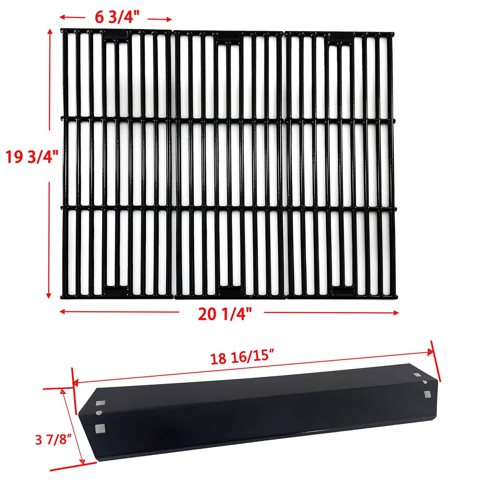 Direct store Parts Kit DG234 Reemplazo para Parrillas de Gas Chargriller 3001,3008,3030,4000,5050,5252; King Griller 3008,5252 Placa de Calor, Rejilla de Cocina; se ajusta a los Modelos de Char-Griller: 3001, 3008, 3030, 4000, 5050, 5252; se ajusta a los Modelos de King Griller: 3008, 5252. El kit de Direct store Parts incluye 3 placas de calor de acero porcelanizado y 1 juego de 3 rejillas de cocina de hierro fundido porcelanizado. Dimensiones de la Placa de Calor: 18 15/16″ x 3 7/8″; Material del Escudo de Calor: Acero Porcelanizado. Dimensiones de la Rejilla de Parrilla: 19 3/4″ x 6 3/4″ cada una o Total 19 3/4″ x 20 1/4″; Material de la Rejilla de Cocina: Hierro Fundido con Recubrimiento de Porcelana. Modelos de Parrilla Compatibles: Reemplazo para los Modelos de Chargriller: 2121, 2123, 2222, 2828, 3001, 3008, 3030, 3072, 3232, 3725, 4000, 4001, 4008, 4208, 5050, 5072, 5252, 5650, 9020 gas grill.; Reemplazo para los Modelos de King Griller: 3008, 5252; Reemplazo para los Números de Parte Originales: CG2121, CG2121, 95051, 65051;