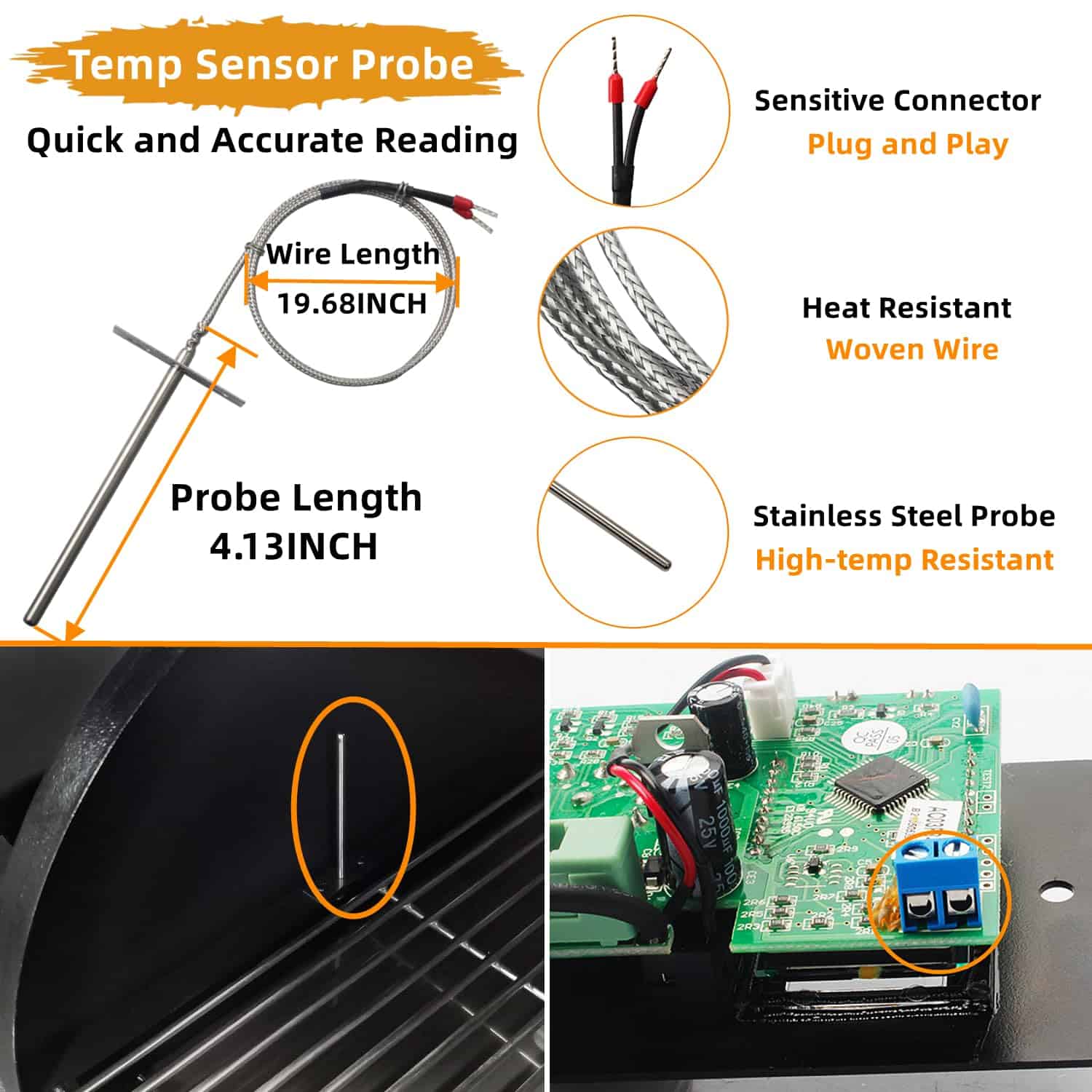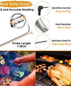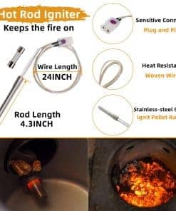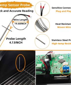 Este kit de repuesto para parrilla de pellets Pit Boss incluye un controlador de termostato digital actualizado que resuelve el problema de control de la temperatura que se experimentó con el original. Cuenta con 9 ajustes de temperatura de cocción, con la posibilidad de ajustarla de 180 F a 500 F en incrementos de 25/50 F. Mantiene la temperatura mejor que el original y en el ajuste de humo, la parrilla opera a la temperatura más baja. La instalación es plug and play, solo hay que emparejar los colores de los cables en cada enchufe. Las sondas de temperatura están hechas de acero inoxidable de grado alimenticio para monitorear la temperatura de la carne o de la parrilla. El diseño de la punta de la sonda proporciona una detección rápida y precisa de la temperatura, alertándote a los cambios de temperatura en segundos. La varilla de ignición caliente de 200 vatios/120 voltios con un cable de conexión de 21″ está rodeada por una funda de acero inoxidable que se calienta rápidamente para encender los pellets de manera eficiente y dura más tiempo. Viene con un fusible para evitar que el interruptor de corriente GFCI se desconecte. Ofrecemos una garantía del 100% de devolución de dinero y satisfacción al cliente, si tienes alguna pregunta al recibir las piezas de repuesto para la parrilla de pellets Pit Boss, puedes contactarnos directamente y te daremos una respuesta satisfactoria en 24 horas y una solución adecuada.