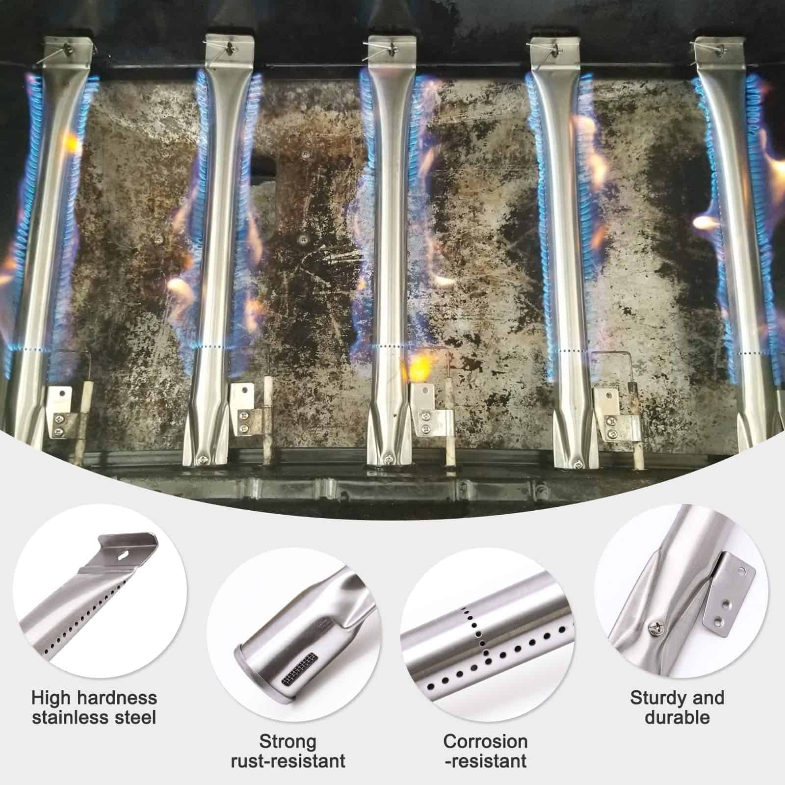 Este kit de piezas de repuesto Nexgrill 720-0864 incluye 4 piezas esenciales. 2 x tamers de llama, 2 x tubos quemadores.