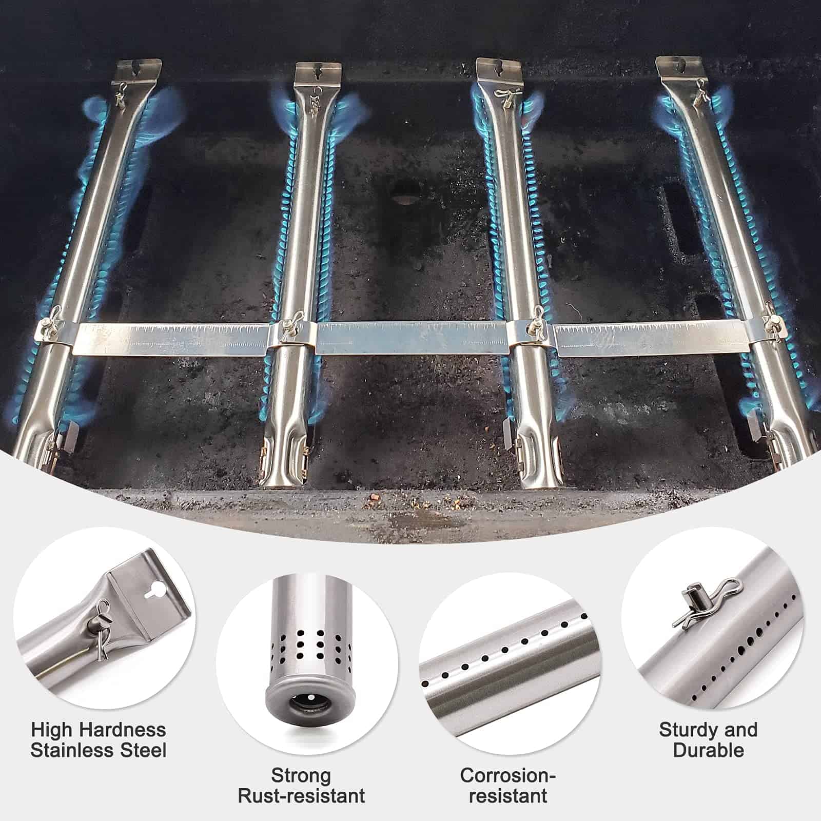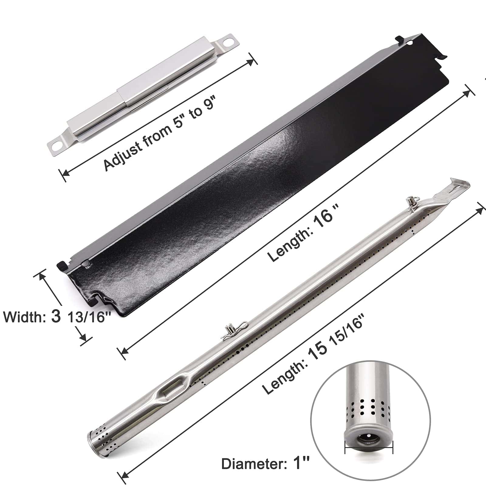 Medidas de Quemador: 15 15/16″ de largo x 1″ de diámetro, Construcción de acero inoxidable duradero