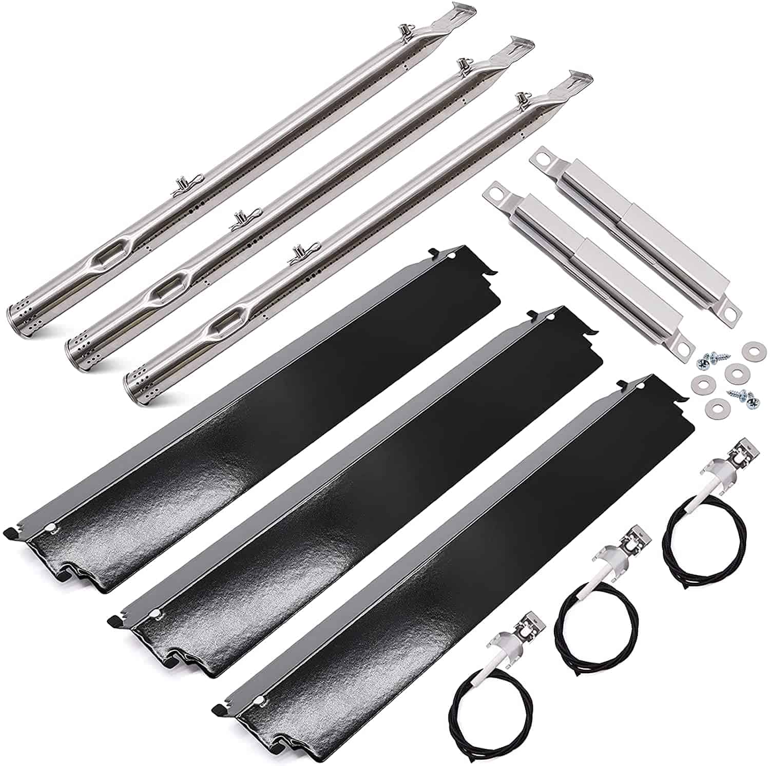 Adviace se especializa en piezas de repuesto para barbacoas de alta calidad para parrillas Charbroil. Ahorre dinero y tiempo actualizando su parrilla de barbacoa Charbroil existente con piezas de repuesto Adviace. Renueve su parrilla de gas Charbroil con este kit de piezas de reemplazo. Piezas de repuesto para los modelos de Charbroil 463247412/463257110/463247109/463270912. Refresque el rendimiento de las piezas de su parrilla para mejorar la vida útil de su parrilla CHARBROIL. El paquete consta de 3 quemadores de acero inoxidable, 3 tubos de calor de acero con recubrimiento de porcelana, 3 ignitores y 2 tubos de transferencia.