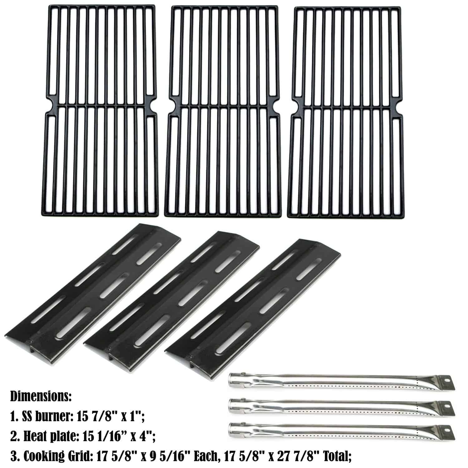 Kit de Piezas Direct Store DG135 de Reemplazo para Quemadores, Placas Térmicas, y Rejillas de Cocina de la Parrilla de Gas Brinkmann 7231; Para parrillas de gas Brinkmann 7231; Reemplazo para los números de parte originales: 115-7231-0, 115-7231-2, 600-7100-0, 812-7140-0, 600-8502-4, 11572310, 11572312, 60071000; El kit de piezas Direct Store incluye 3 quemadores de acero inoxidable, 3 placas térmicas de acero porcelanizado y 1 set de 3 rejillas de cocina de hierro fundido porcelanizado;