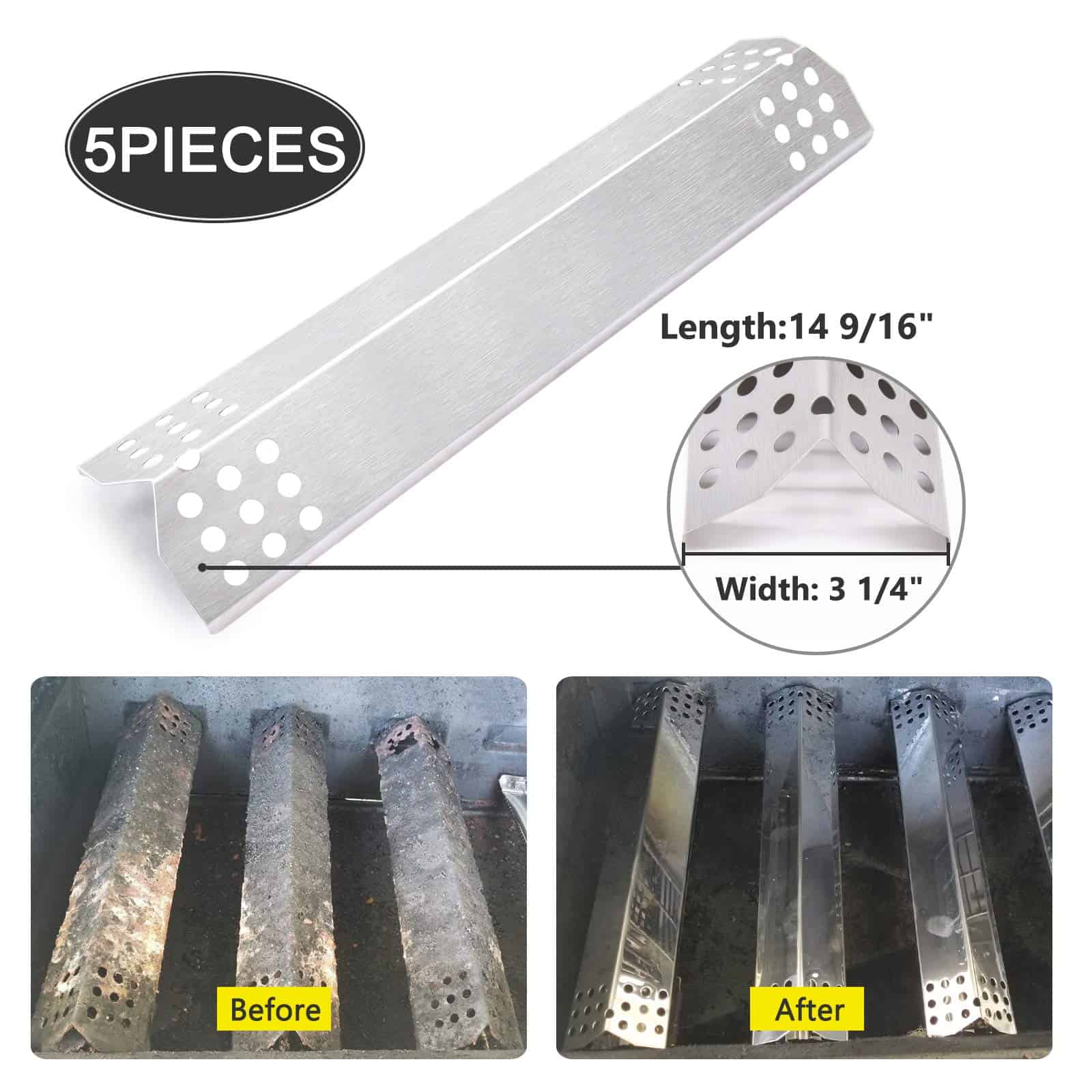 Medidas del Protector de Calor: 14 9/16″L x 1/4″A, Construcción duradera de acero inoxidable.