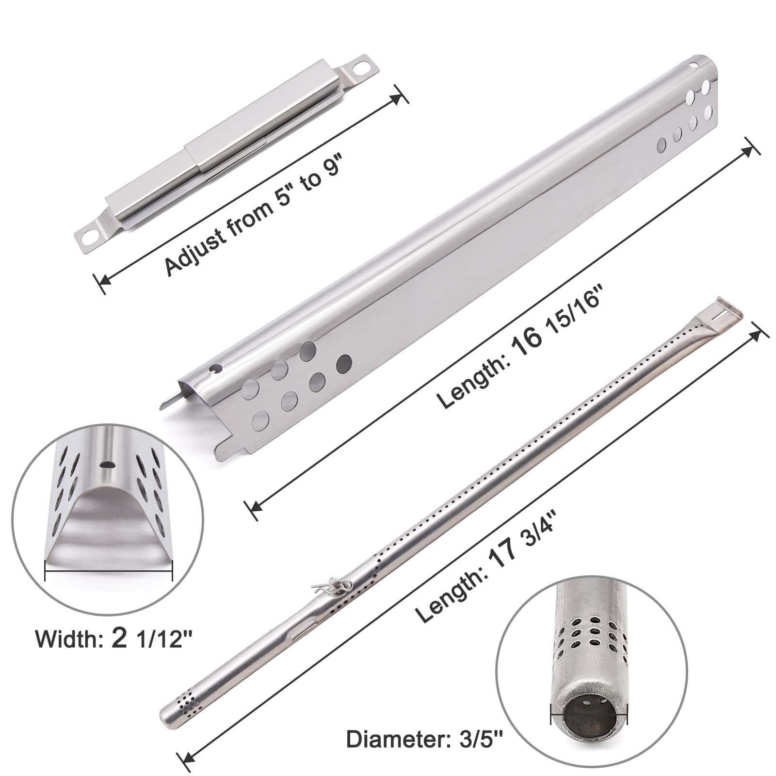 Dimensiones del quemador para parrilla: 17 3/4″ x 3/5″ Dia.