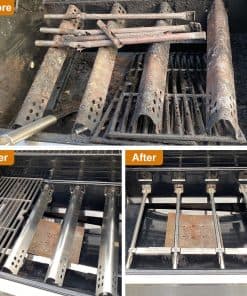 Renueve su parrilla de gas Charbroil con estos quemadores de acero inoxidable de repuesto y protectores contra el calor y tubos de transferencia de calor. Piezas de repuesto para parrilla Charbroil modelo 463347519, 463276517, 463244819, 463275517 y 463347518. Refresque el rendimiento de sus piezas de parrilla 463347519, para mejorar la vida útil de su parrilla Charbroil. El paquete consta de 5 quemadores de acero inoxidable y 5 toldos de calor de acero inoxidable y 4 tubos de transferencia de calo…